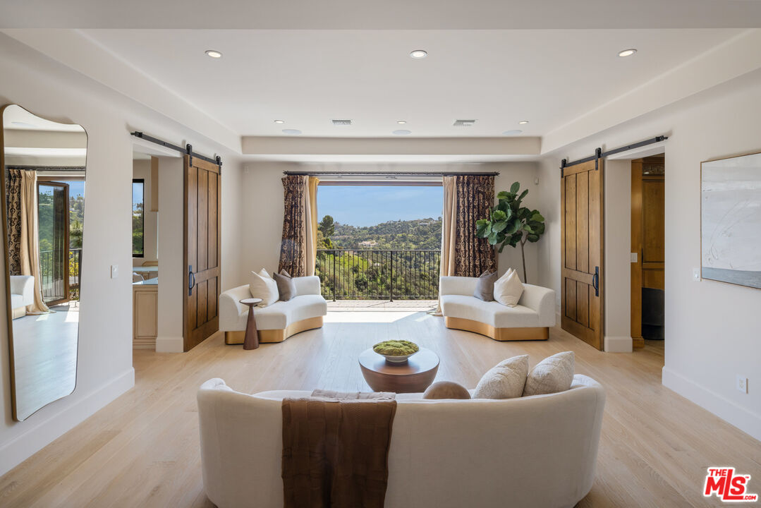 A stunning Tuscan-inspired estate, nestled in upper Bel-Air, across three levels with breathtaking canyon views and peekaboo ocean views. This 6-bedroom villa features a stunning two-story grand foyer, limestone floors, and timeless architectural details throughout. An elegant private elevator connects the three main floors, leading to a refined home office and gym, each with its own half bathroom. Expansive living spaces throughout the home are ideal for entertaining, indoors or outside. The chef's kitchen opens to the outdoor dining and a full outdoor kitchen. Warm stone textures, arched doorways, and custom woodwork evoke the romance of the Italian countryside. The three-car garage offers ample space, while lush outdoor terraces invite you to relax and unwind.