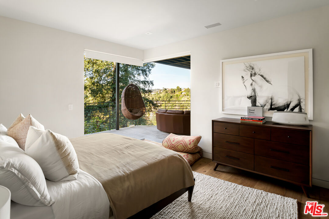 Masterfully conceived by HEH in collaboration with Von Studnitz Architects and Studio Preveza, this exceptional residence was designed as the personal home of an experienced developer/owner, one who truly did not miss a beat. Perfectly positioned at the end of one of Bel Air's most coveted and private view streets, the property offers rare privacy paired with breathtaking scale and presence. Behind gates and mature landscaping, the home reveals sweeping 270-degree views spanning Downtown Los Angeles, city lights, canyons, and the Pacific Ocean. Mornings begin with a beautiful sunrise from the primary suite, while evenings unfold with dramatic sunsets from both the front and rear decks, creating an ever-changing backdrop of light and atmosphere throughout the day. Inspired by the refined, effortless aesthetic of James Perse, the residence captures the essence of elevated California living modern yet warm, sophisticated yet relaxed seamlessly blending indoor and outdoor spaces. Impeccably finished, the open-concept floor plan is designed to frame panoramic city and ocean views from nearly every major room, complemented by rich, natural materials throughout. The layout includes a private first-floor bedroom suite thoughtfully separated from the main living areas, along with a dedicated office ideal for an owner constantly on the move. There are six spacious bedroom suites, including a luxurious primary retreat with a sitting room and private balcony, as well as subterranean guest quarters with a separate entrance, offering privacy and flexibility. Every detail reflects intention and experience from the private home theater and beautifully scaled living spaces to the seamless indoor-outdoor entertaining areas. Outdoor sitting and dining zones overlook a curated vegetable and herb garden, surrounded by citrus trees, French lavender, and Tuscan rosemary evoking a true Italian villa sensibility. The result is a rare fusion of California ease with a European, Italian-inspired lifestyle that feels romantic, timeless, and deeply livable. The outdoor experience is anchored by a 40 foot infinity-edge pool, expansive decks, and serene hillside gardens, creating a private urban oasis. Additional amenities include a state-of-the-art kitchen, fitness studio, three-car garage, and a wide, flat motor court accommodating three large SUVs or low-profile sports cars with ease. Designed with precision, warmth, and timeless restraint, this is a modern architectural residence in one of Bel Air's most desirable locations a property that must be seen in person to fully appreciate.