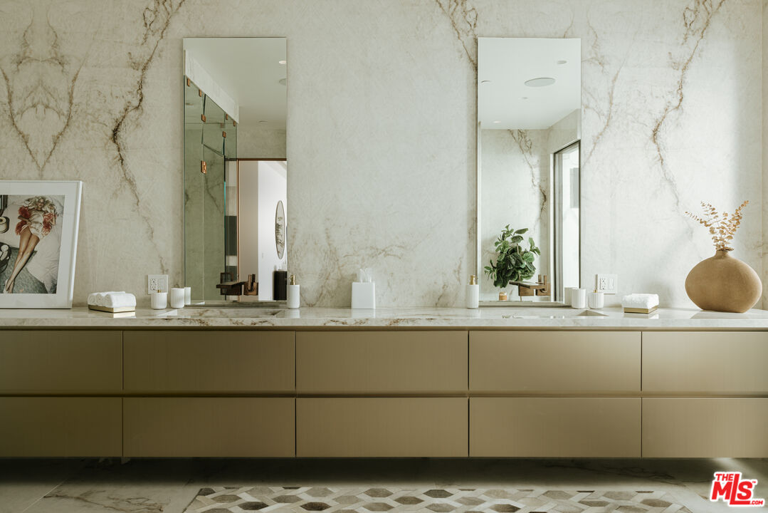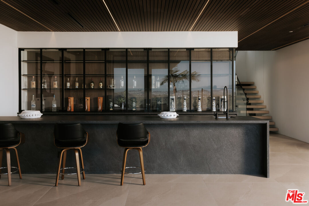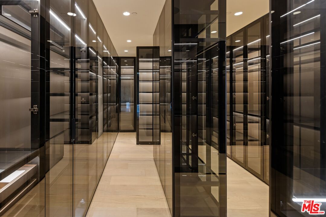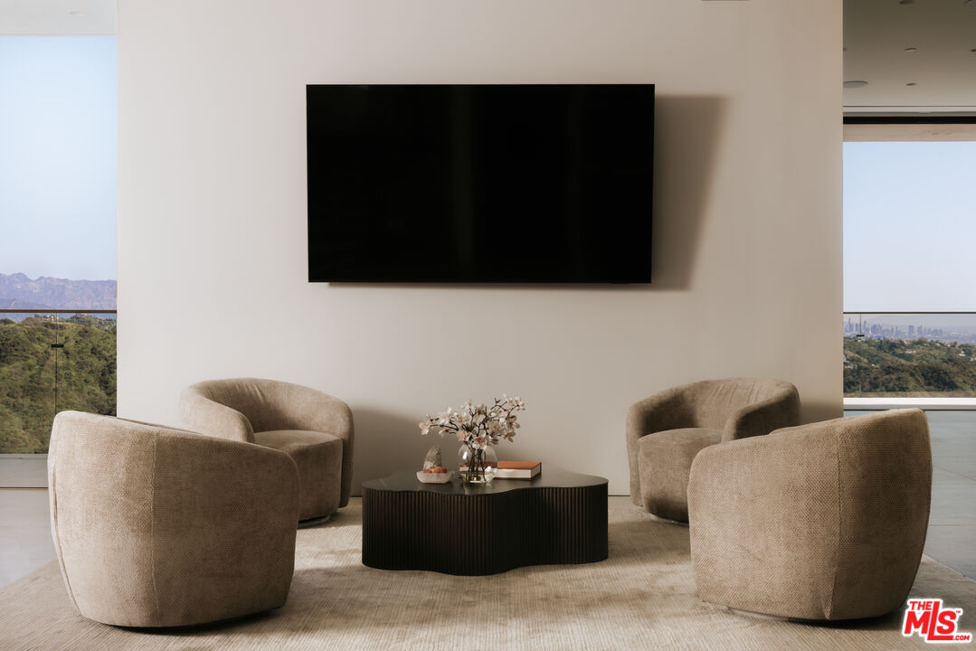 Welcome to 2180 Stradella Road, a striking contemporary new construction with sweeping panoramic views of the reservoir and Downtown Los Angeles. Designed with exceptional craftsmanship and refined finishes, this architectural residence is thoughtfully positioned to maximize its dramatic setting. Soaring ceilings and walls of glass define the open-concept main level, featuring a grand living room with a statement marble fireplace, formal dining room, family lounge, and a chef's kitchen with adjacent butler's kitchen, all outfitted with top-tier appliances. A guest suite completes the main floor. The upper level is highlighted by an expansive primary retreat with a wraparound terrace, marble fireplace, dual oversized dressing rooms, and spa-inspired baths, along with three additional en-suite bedrooms and a laundry room. An elevator connects to the lower level, designed for entertaining, with a theater, lounge and bar, wine wall, gym, and two additional bedrooms. Floor-to-ceiling pocket doors open to an outdoor kitchen, resort-style pool, spa, and yard overlooking the reservoir. Set on over an acre in a coveted Bel Air location, this newly built estate offers exceptional views, privacy, and elevated modern living.