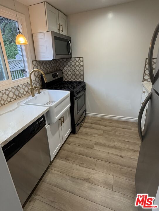 Charming upscale house with updated interior finishes, solar power (electric), security system and an updated single car garage with a 220 EV charger. Completely renovated home with amenities and central HVAC. Property located North of Sunset Blvd. in a quiet neighborhood with NO through traffic, and panoramic mountain views. Plenty of room for outdoor furniture and BBQ on terraces or lower deck. Included on the property is a bonus area for a garden of your interest, or hobby.Minutes from UCLA college/medical centers, nearby Century City/Beverly Hills. Also, 5 minutes from dry cleaners, Rx, grocery store, Starbucks and restaurants. Safe hiking options nearby, too.MAIN UPPER LEVEL: 2 bedrooms , 2 complete bathrooms with French doors leading out onto oversized decks. Kitchen has stainless steel appliances, ample maple cabinet storage and granite counter tops including an adjoining den/entertainment room with vaulted ceiling and sky lights. Master bath has double sinks, marble floor, jacuzzi bathtub/shower, linen closet and built-in washer/dryer cabinet.LOWER LEVEL: Separate entrances: front French doors and door to backyard deck). Main room has multiple windows and provide great light. Convenient for: work/ studio, gym, TV viewing, bedroom or combination of all. Includes a full kitchen with farm sink, dishwasher, stove, refrigerator, M/W with white quartzite countertops. Bathroom has a beautiful glass tiled walk-in shower with curved glass doors. As well a separate room with a closet for ample storage space. Property has additional off street parking. Small dog OK.Available Dec 2.additional off street parking. Small dog OK. Available Dec 2.