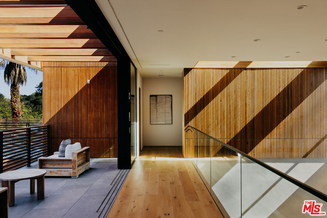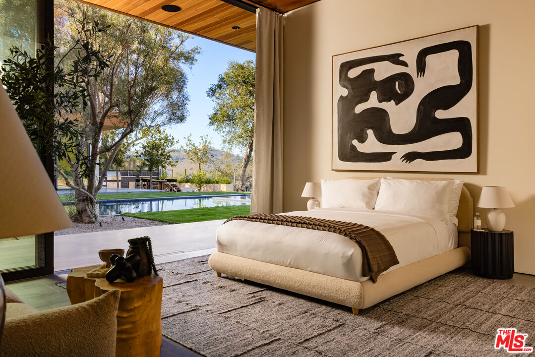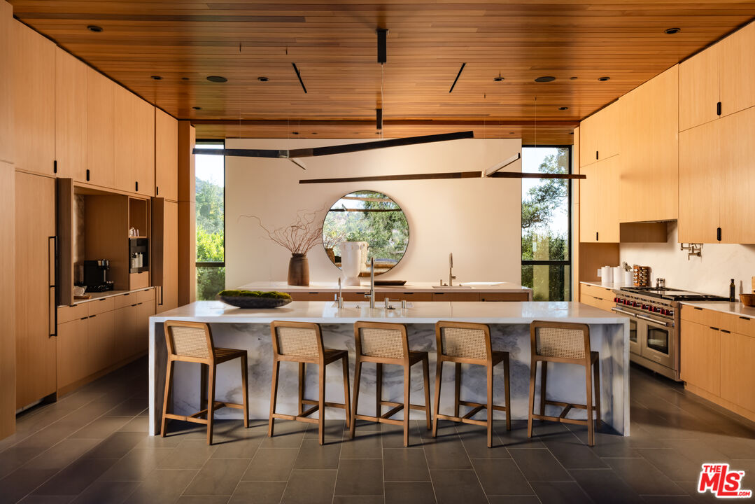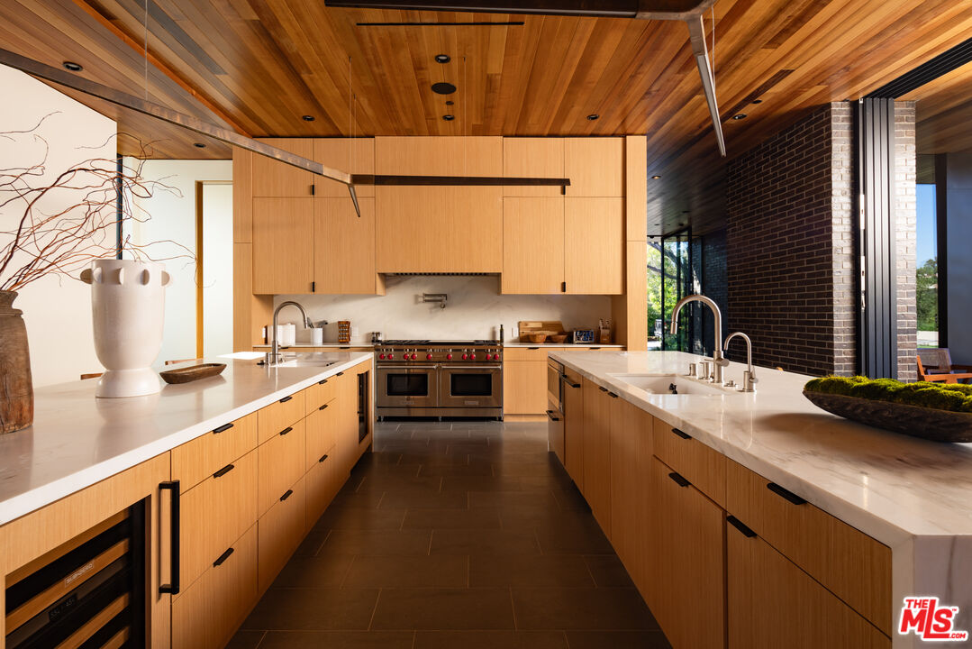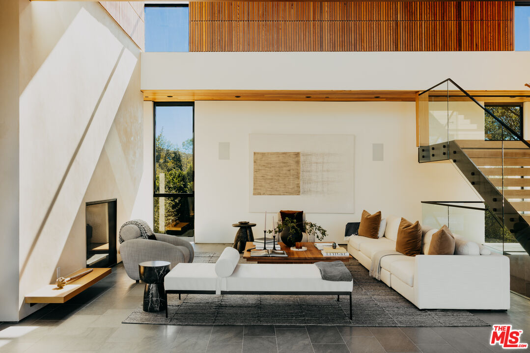 This stunning new architectural gem, designed by the acclaimed Noah Walker, sets a new standard for luxury living. Nestled behind the prestigious gates of Oak Pass Road in Beverly Hills, this ultra-private estate offers a rare combination of seclusion and grandeur. Spanning across an expansive floor plan, the home features 6 spacious bedrooms and 9 lavish bathrooms, perfect for both intimate living and large-scale entertaining. The journey begins through an impressive glass pivot door, greeted by a 10-foot indoor greenery wall, elegant brick-clad columns, and soaring hardwood ceilings. The state-of-the-art kitchen is a chef's dream, with dual marble islands, oak cabinetry, top-of-the-line Wolf and Subzero appliances, and two Miele coffee makers. The kitchen seamlessly flows into the dramatic two-story living area, complete with a custom floating staircase that connects all levels of this architectural wonder. Designed to blend indoor and outdoor living, the home boasts 50-foot Fleetwood pocket doors that open to the meticulously landscaped grounds, featuring a zero-edge pool and spa, an outdoor kitchen, fire pit, olive trees, and multiple lounging areas all set against breathtaking panoramic views. First-class amenities include a private movie theater, fully equipped gym, Himalayan salt sauna, dual steam showers, a temperature-controlled wine display, three private balconies, and a Crestron smart home system. The motor-court, lined with mature oak trees, adds the finishing touch to this one-of-a-kind estate. This extraordinary residence offers an unmatched level of sophistication, set in one of the most exclusive locations in Beverly Hills. An unparalleled opportunity for those seeking ultimate luxury.