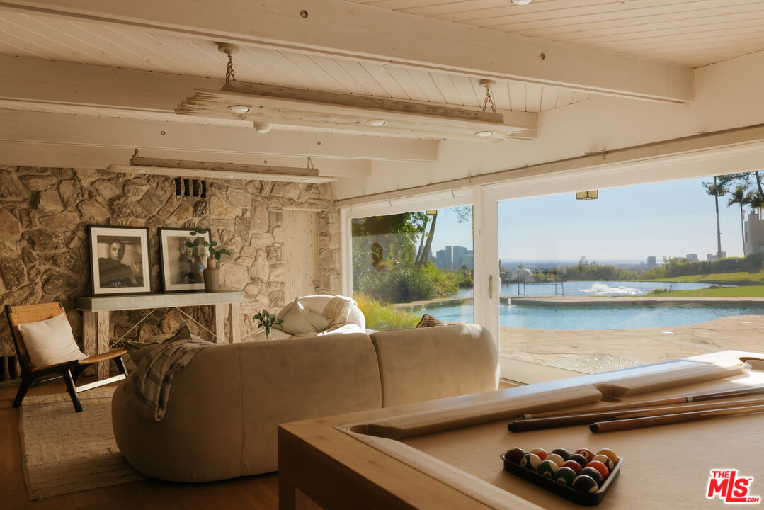 Set within a quiet pocket of Beverly Hills, 1177 Loma Linda Drive is a substantial single level estate defined by privacy, architectural heritage, and expansive views. Created as the personal residence of renowned architect S. Charles Lee, the home reflects a disciplined design approach paired with a strong connection to its natural surroundings.The residence sits on an unusually flat 1.3 acre property comprised of two legal parcels. Elevated positioning allows for open views across Beverly Hills, Century City, and the Pacific Ocean, while the grounds remain peaceful and shielded from neighboring homes. The setting offers a rare sense of openness just minutes from the center of the city. Six bedrooms and ten bathrooms are thoughtfully arranged to support both comfortable daily living and effortless entertaining. The home features generous formal living and dining spaces, a large kitchen with adjoining breakfast room, private office, family room, and a dedicated exercise and yoga studio overlooking a koi pond with waterfalls and flowing water features. Outdoor amenities are a defining element of the property. A resort style pool sits alongside one of the largest private ponds in Beverly Hills, home to koi fish and bordered by a meandering stream and landscaped walking paths. A night lit basketball and pickleball court, spa, expansive lawn, and nature walk create multiple environments for recreation, relaxation, and gatherings.Additional features include a three car garage, a spacious motor court, and two gated entrances allowing for discreet service access and seamless hosting. Offering architectural significance, scale, and an exceptional setting, 1177 Loma Linda Drive stands as a rare and enduring Beverly Hills estate.