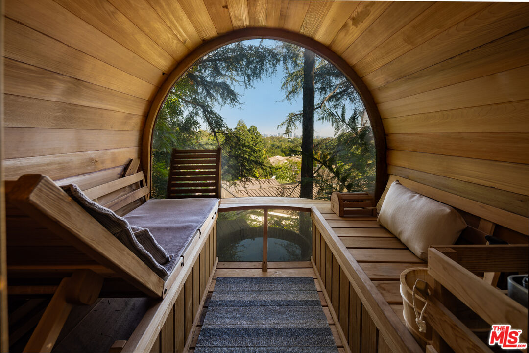 Tucked behind private gates and enveloped by lush, mature landscaping, this turn-key traditional farmhouse rests on a coveted street-to-street lot from Elkins to Oakmont, embodying timeless style and enduring Brentwood elegance. Beyond a meandering, tree-lined drive, the home opens to an inviting front patio that sets the tone for the refined interiors within. A sunlit foyer leads to the family room, where French doors invite indoor-outdoor living and bespoke furnishings by acclaimed designer Rachael Goddard define a sophisticated yet effortless aesthetic. The chef's kitchen, anchored by a grand island and professional-grade appliances, includes a bright breakfast nook and expansive butler's pantry. The dining room, perfect for intimate dinners or grand soires, seamlessly extends to the formal living room and serene outdoor setting. Upstairs, the primary suite is a private sanctuary with a sitting room, fireplace, and balcony, complemented by his-and-hers baths and generous custom closets. Four additional en-suite bedrooms, each with walk-in closets, provide comfort and privacy for family and guests. The lower level is an entertainer's paradise, featuring direct garage access, a mudroom, open entertaining space, a second kitchen, powder room, home theater, expansive wine storage, and a private bedroom with exterior entrance and steam shower. The grounds reveal a luxurious outdoor retreat for elevated entertaining and utmost relaxation, with a fully equipped kitchen and pizza oven, alfresco dining terraces, a tranquil wood-paneled hot tub, and a new sauna framing cinematic city vistas. Additional amenities include an elevator, whole-home water filtration, a Control4 smart system, a dedicated laundry room, and a stately home office, thoughtfully designed to elevate modern living with ease, style, and sophistication. Private yet perfectly connected, this Brentwood residence is moments from the Brentwood Country Mart, premier country clubs, celebrated dining, and top schools, epitomizing the pinnacle of Westside living. 664 Elkins Rd offers unparalleled privacy, timeless design, and a lifestyle tailored to the most discerning admirers. Truly a property not to be missed.
