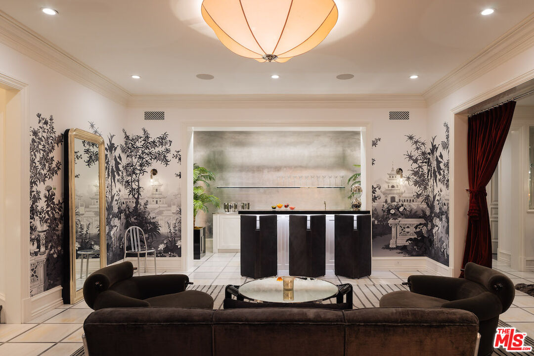 Welcome to 12770 S Bristol Circle an 11,800-SF, 7-bed, 11-bath Brentwood Park estate blending chateau-inspired architecture with chic modern style. Featured in Architectural Digest(Nov'21), this Studio William Hefner-designed home evokes Belle poque elegance. Inside, discover hand-selected marble, custom stonework, and lacquered finishes across a formal dining room, library, office, La Cornue kitchen, and family room. French doors flood the home with natural light. Upstairs, the primary suite offers dual marble baths, walk-in closets, a sitting room, and a private den. Lush grounds evoke the French countryside with manicured gardens, a pool, spa, bocce court, and winding paths. The gated lot includes an attached 2-car garage as well as a 3-story guest house with a kitchen, theater, speakeasy, wine cellar, and 2 ensuite bedrooms. Located in a premier school district near top shopping and dining, this private retreat is a timelessly chic Brentwood gem.