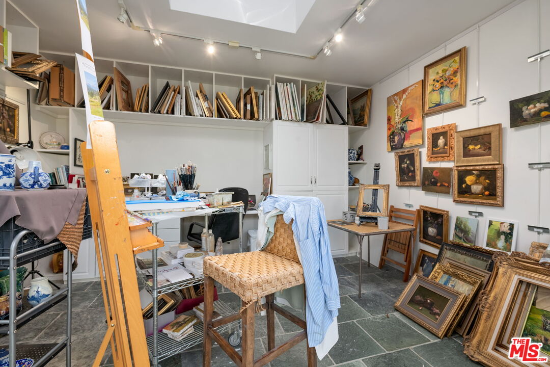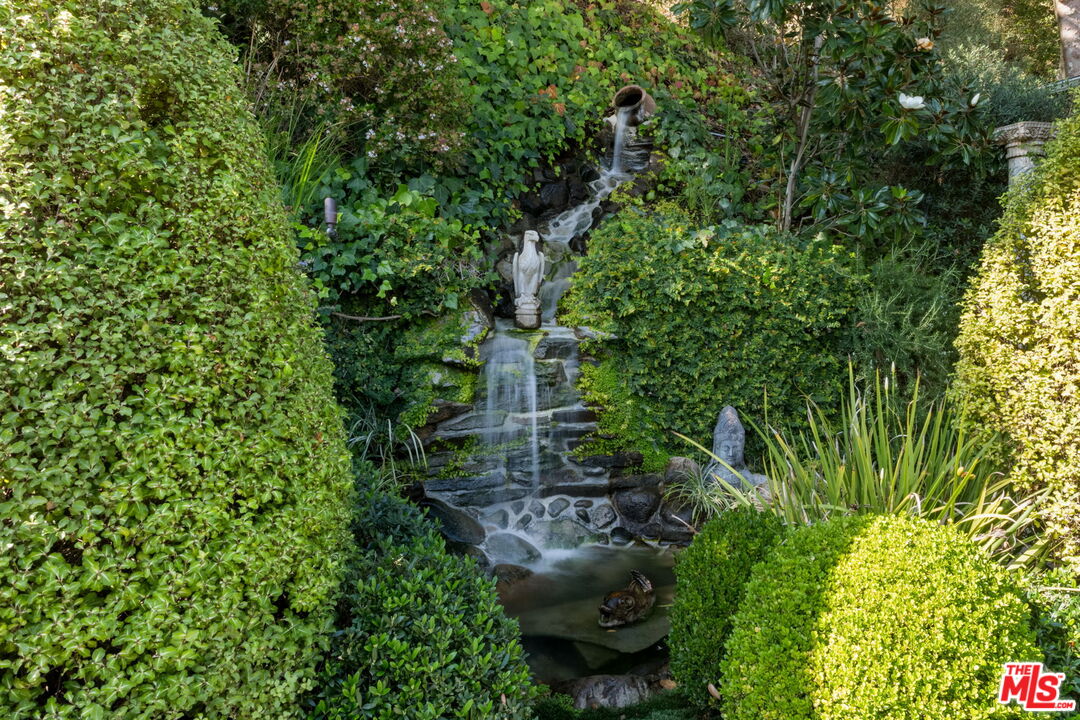 Extensively remodeled with exquisite taste and superior quality, this very special, light and bright one-story home harmoniously blends comfort and style and has been meticulously and painstakingly maintained. Its open and sensible floor plan begins at the formal foyer, leading to the sky-lit living room and dining area designed with the elegant entertainer in mind. This very expansive area, with its light-hued herringbone-patterned wood floors and two stone-clad fireplaces, opens easily to the backyard for seamless indoor-outdoor flow. The family room is warm and cozy with its wet bar and fireplace and opens to the fabulous outdoor living and dining room, complete with a barbecue area, outdoor fireplace and comfort heaters. The chef's kitchen has a breakfast area, quartz countertops, stainless steel appliances and double ovens. There are four bedrooms in total. The primary suite, also opening to the backyard, is truly wonderful with its ample closet space, many built-ins, beautiful spa-like bath and sitting area. Adjacent are two spacious bedrooms sharing a tasteful hall bath. The fourth bedroom is located by the kitchen, perfect as a gym, nanny's or housekeeper's room. The backyard is nothing short of glorious, every inch professionally landscaped. A true paradise, there is natural beauty to behold everywhere, all amidst the soothing sounds of an artfully-crafted cascading waterfall. There's also a separate multi-purpose art studio in the backyard, as well. Extensive updates, many of them quite recent, include central air and heat, metal doors and windows, many exquisitely-crafted built-ins, multiple skylights, recessed lighting, art-focused lighting, a separate generator connected also to the gas line, a Tesla car charging port, a new roof, a security system and so much more. The garage has extra storage and offers direct access into the house. Please ask the agents for a comprehensive list of updates. Inclusion in the very desirable public school districts which include Kenter Elementary School, Paul Revere Middle School and Palisades High School. All this, moments from the town center with all the shopping, dining and services that Brentwood offers.