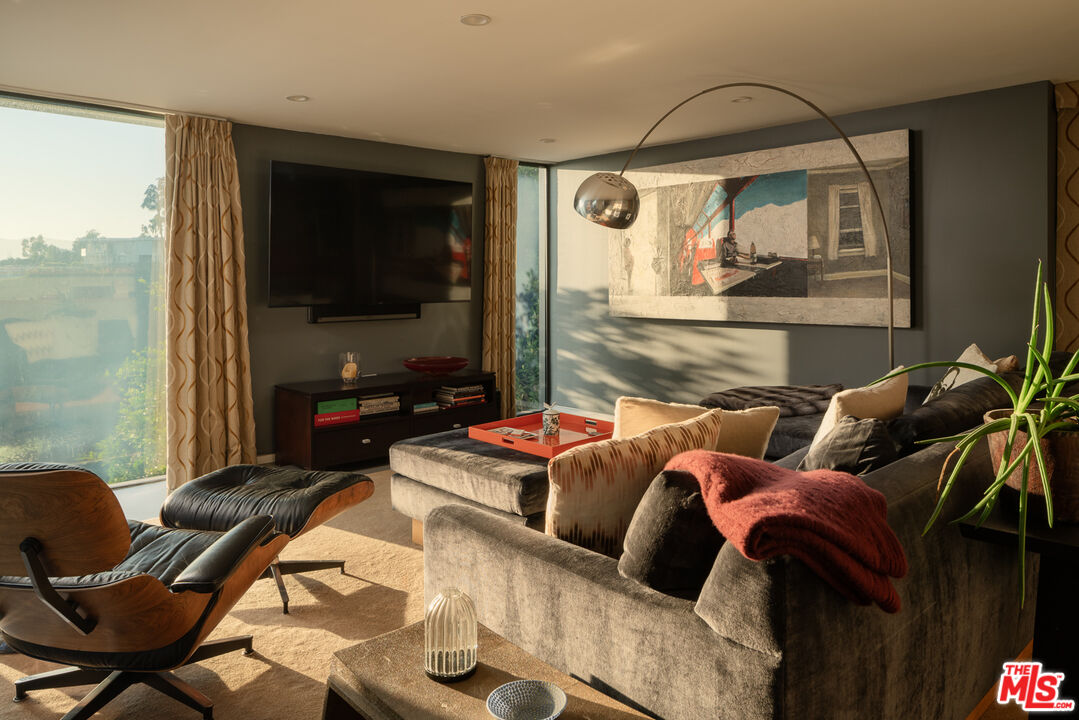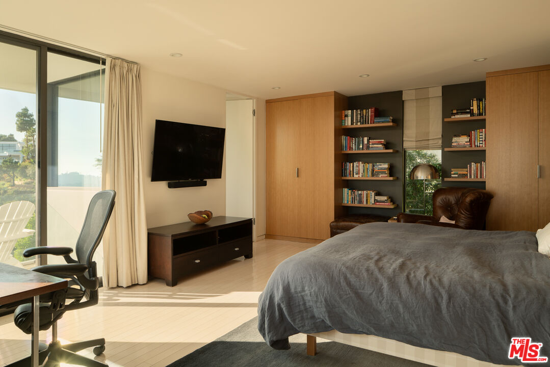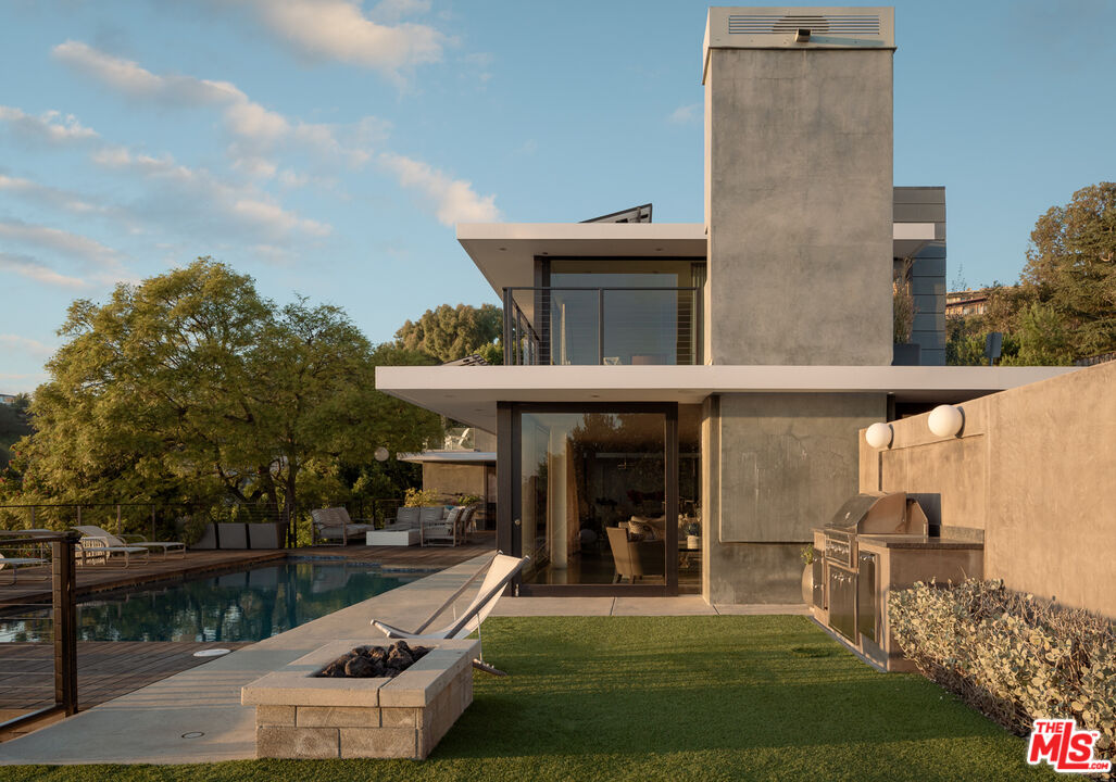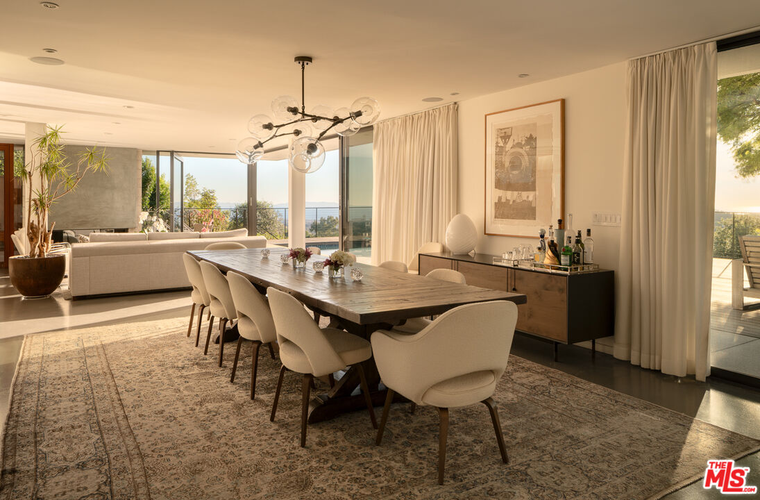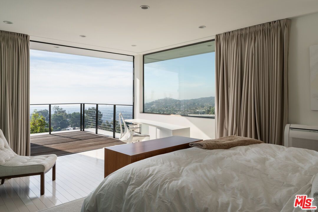 As featured on cover of Los Angeles Magazine, Award-winning 21st century contemporary interpretation of a mid-century home, off prestigious Tigertail Rd, with floor to ceiling windows, huge deck and pool opening to endless ocean views. Perfectly positioned on a quiet cul-de-sac, the home captures explosive city and unobstructed ocean views, including Downtown Los Angeles, Santa Monica, Palos Verdes, Catalina Island, and the Santa Monica Mountains. Every sunset becomes a living art piece. Inside, the home is flooded with natural light, framed by floor-to-ceiling windows and meticulously crafted woodwork. The open-concept kitchen with a soaring ceiling anchors the main level, offering seamless flow to the second story and bringing light into every corner. Each room is intentionally oriented to the view, creating a constant connection to the landscape and the serenity that defines this neighborhood. Upstairs features two ensuite bedrooms, one includes a steam room and each with their own private patios to enjoy the views. There is flexibility to reconvert one of the spacious primary closets back into a third bedroom. A perfect home to entertain and enjoy indoor outdoor California living, the large pool sits over the canyon with nonstop city and ocean views, complemented by a cozy fire pit ideal for gathering, relaxing, and watching sunsets. Thoughtfully designed outdoor lighting and custom uplighting create a dramatic atmosphere in the evenings. Below, the owners terraced a private wellness zone featuring a sauna and cold plunge. Nearby hiking trails complete the idyllic lifestyle. Every detail is turnkey, clean lines, warm textures, thoughtful materials, and a timeless aesthetic that honors the home's architectural roots while elevating it for modern living. For the buyer who prioritizes architecture, privacy, and unforgettable views, this Brentwood home stands alone.