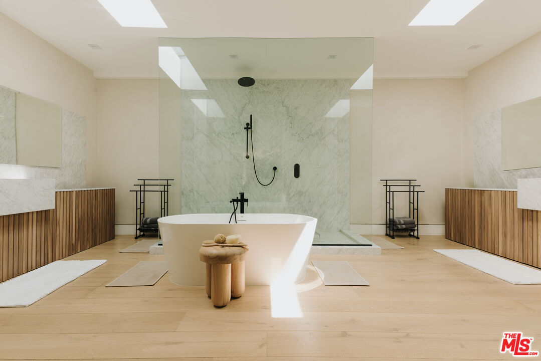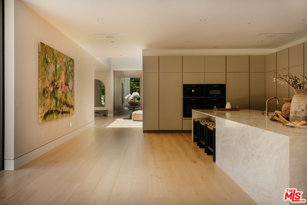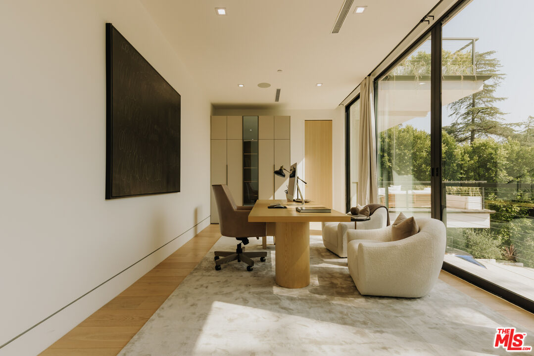 Hidden at the end of a long, gated drive, this expansive newly built estate sits on a rare Brentwood parcel that offers both exceptional privacy, scale, and connection to nature. With eight bedrooms and 12 bathrooms, the home is designed for luxury living without sacrificing comfort or function. The main level features generous open living spaces that connect seamlessly to the outdoors that include a sprawling lawn, oversized pool and spa, and multiple areas for dining, lounging, and entertaining. Inside, natural light floods through floor-to-ceiling windows, with views of the surrounding trees and greenery creating a continuous connection to the outdoors. Thoughtfully designed to accommodate both daily life and special occasions, the main level includes formal and informal living areas, a chef's kitchen featuring top of the line Mielle appliances and bespoke cabinetry, a junior primary suite, and a commanding office overlooking the trees. Upstairs, the primary suite offers a private retreat complete with sitting area, master bath, walk-in closet, and access to sprawling outdoor terraces. A private elevator and grand staircases lead to the ground level, featuring a home theater, gym and climate controlled wine room. Surrounded by mature landscaping and set far back from the street, the property feels quiet and protected, yet remains close to the vibrancy of Brentwood. 260 Canyon View is a rare opportunity to enjoy both privacy and convenience, all while experiencing the pinnacle of California's indoor outdoor living.