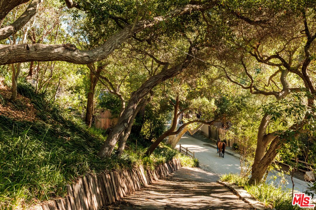 Perched above Old Ranch Road in the coveted equestrian enclave of Sullivan Canyon, this Cliff May designed home exudes the integrity and rustic origins of a California Ranch. Like many Cliff May homes, the courtyard mingles with and also creates space between the primary suite and (3) guest bedrooms. Through French doors, each sun-drenched room opens to the tranquil and bucolic grounds canopied by mature sycamores and oaks. Pitched shiplap ceilings, skylights, and terracotta tile floors complete a true gem that is only minutes from the Brentwood Mart and Riviera Country Club.