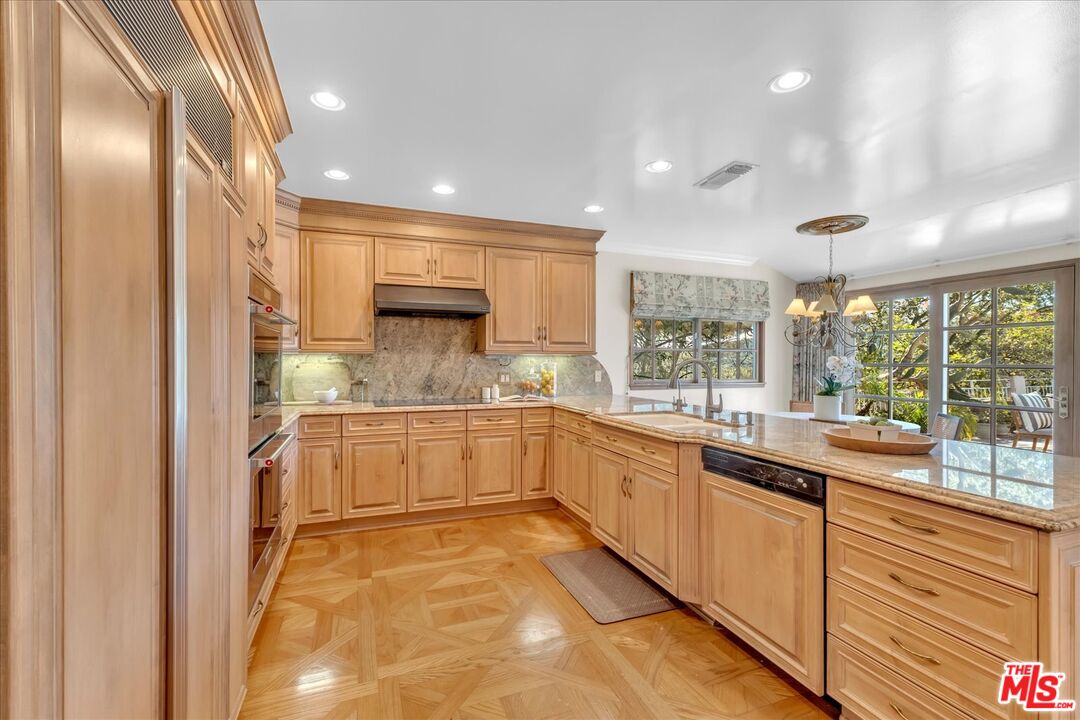 INCREDIBLE NEW PRICE! Set on an expansive over 14,000 sq ft view lot. This long term owner single-level over 4,400 sqft showcase home is in the coveted Bel Air Knolls area of upper Brentwood, just off world famous Mulholland Drive, and provides the ultimate in sophisticated living. A classic center hall plan offers a primary suite with abundant closets and a separate Media/game room in addition to a gracious formal living/dining and family rooms. Wine collectors refrigerated cellar and a chef's kitchen with a sunny breakfast room overlooking the sparkling pool. A staircase accesses the unique parkland owned by the city behind the house ideal for jogging or dog walks. Pastoral treetop views and the ultimate in privacy awaits the next lucky buyer. Custom upgrades throughout, including recirculating hot water to all faucets. This unique area provides sidewalks, streetlights and easy access to both The Westside and The Valley as well as local hiking and biking trails and some of the best private schools in the City. Move right in or reimagine your own dream decor in this ideal floor plan at your own entertainer's hilltop lair. Minutes from all, 16560 Park Lane is the spot to enjoy your new well deserved lifestyle.
