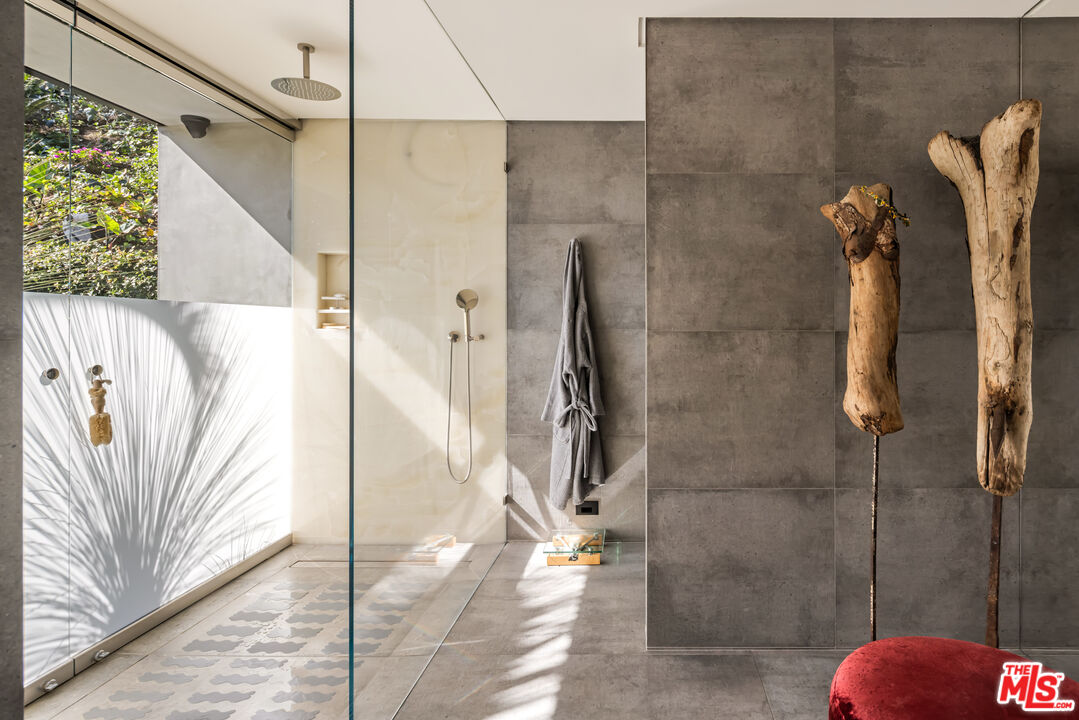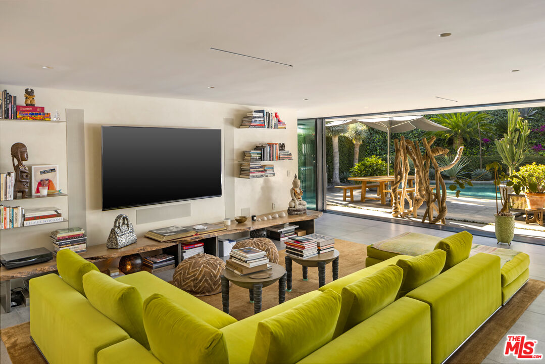 Recently rebuilt with intention and the highest level of craftsmanship, this reimagined mid-century retreat captures the rare balance between organic calm and architectural precision. The front grounds - composed by noted landscape architect Garett Carlson - frame the residence with lush, sculptural greenery and zen-inspired paths.Inside the secure gated entry, light moves fluidly across Venetian plaster walls, creating a tranquil rhythm throughout the residence. The formal living room serves as the centerpiece - anchored by a floor-to-ceiling bronze mirror fireplace and piano - where expansive glass panels open completely to the outdoors, merging home and landscape into one continuous environment. The kitchen is equal parts performance and display: new Miele appliances including built-in coffee, microwave, and concealed refrigerator/freezer, Wolf range and beautifully maintained stone counters. An adjacent glassware showcase and bar serve a second living area, also opening to the outside for seamless entertaining. The adjacent wine lounge adds a full modern bathroom and temperature-controlled refrigerator to the space, while a richly appointed powder room with a carved stone basin and dedicated laundry room complete the wing.Floor-to-ceiling sliders run the length of the main rooms, opening to an outdoor oasis designed for effortless gatherings: a large pool and spa set against lush California greenery, an alfresco kitchen and BBQ with generous dining deck, a separate seating area wrapped around a fire pit, and pockets of quiet landscape throughout. The primary suite extends directly to the hammock terrace and pool, and features a dramatic two-level, custom dressing room/closet, along with a spa-caliber bath appointed with rare Italian onyx dual vanities and a glass rainfall shower. A second bedroom enjoys its own bath with soaking tub and rainfall shower and opens to a private patio and fitness area. A third room - currently configured as the expansive primary closet offers flexibility for a future guest suite if desired.Every system was carefully renewed between 2020 and 2023, including new roofing, solar energy, and a high-efficiency HVAC with linear diffusers. Additional amenities include a sculptural metal slatted two-car garage with ample storage, and total privacy achieved by the enveloping landscape and design. The result is a refined indoor-outdoor retreat where art, light, and craftsmanship are the constant.