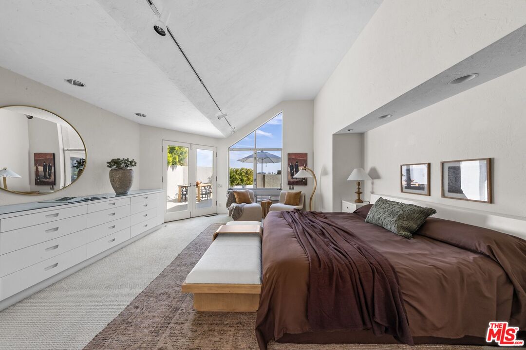 Designed by renowned Santa Monica architect Johannes van Tilburg, this striking residence is a refined expression of modernist geometry where simplicity, proportion, and light take center stage. Inspired by the architectural philosophy of Luis Barragan, the home blends modernism with subtle traditional influences. Clean architectural lines and thoughtfully placed interior windows foster a dynamic interplay of openness and connection. Soaring ceilings provide gallery-scale walls ideal for art, while expansive windows frame tranquil views and bathe the interiors in natural light. The seamless indoor-outdoor flow is perfectly suited for entertaining, anchored by a reimagined pool that commands the rear deck, complete with a lovers fountain that enhances the home's tranquil, resort-like atmosphere. The spacious primary suite features generous closet space, complemented by three additional bedrooms, one currently styled as a home office. Celebrated in the LA County Museum of Art Art & Architecture Tour, the Women's Architectural League, and the American Institute of Architects Tour, this nearly 3,000-square-foot home is a rare and private offering, tucked away in the coveted Helena's.