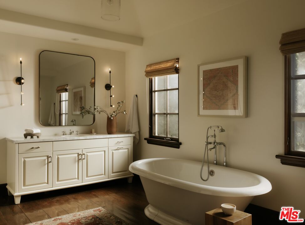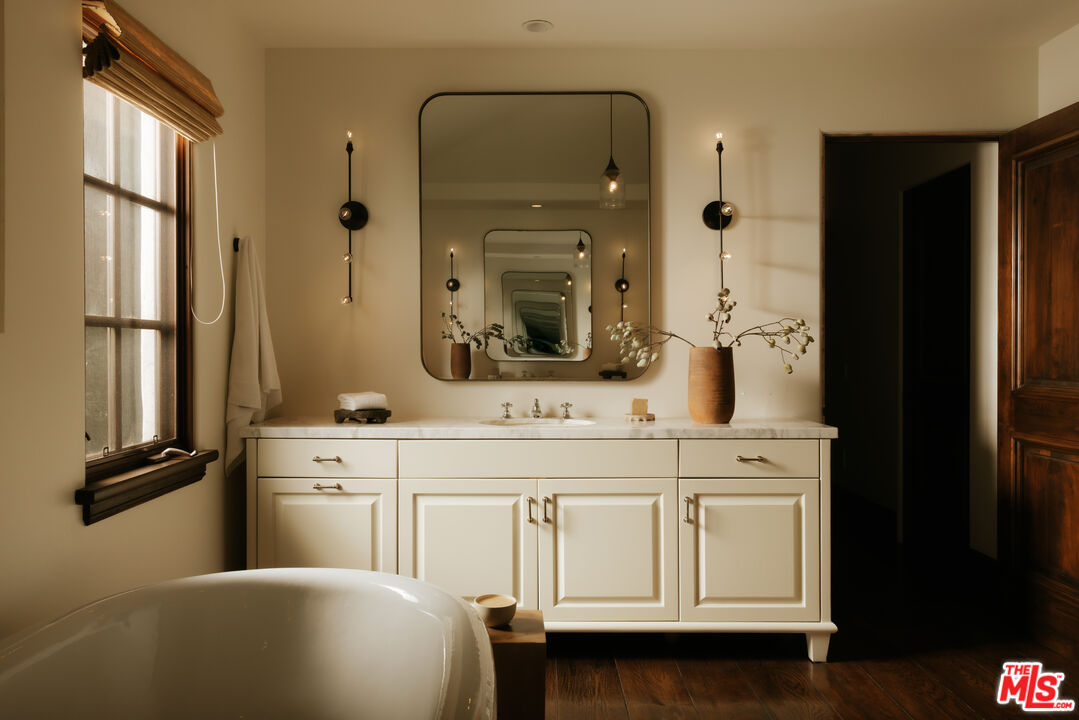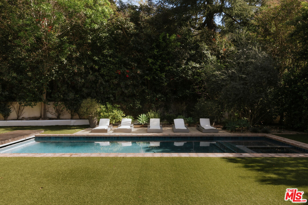 Gracefully set in the heart of Brentwood, this timeless Spanish estate is a masterclass in scale, elegance, and refined California living. Encompassing approximately 5,773 square feet, the residence offers five bedrooms and six bathrooms, thoughtfully curated to balance grand-scale entertaining with effortless everyday luxury. A dramatic entry introduces a series of beautifully proportioned interiors defined by soaring ceilings, rich architectural detail, and an abundance of natural light. Formal living and dining rooms unfold with quiet grandeur, seamlessly transitioning into inviting gathering spaces designed for both intimate evenings and vibrant celebrations. Expansive doors dissolve the boundary between indoors and out, embracing the quintessential Southern California lifestyle. At the center of the home, the chef's kitchen serves as both showpiece and sanctuary, appointed with premium appliances, generous preparation spaces, and a sun-drenched breakfast nook ideal for leisurely mornings or lively gatherings. Each bedroom suite is privately situated and luxuriously appointed, complete with walk-in closets and refined baths. The primary suite offers a serene retreat, defined by scale, privacy, and spa-inspired indulgence. The grounds evoke the ambiance of a private resort. Mature landscaping frames a sparkling pool, while multiple terraces and lounging areas provide an exquisite backdrop for alfresco dining, sophisticated entertaining, or tranquil repose. Additional amenities include a temperature-controlled wine cellar, integrated sound system, smart home technology, and a comprehensive security system, all enhancing the home's comfort and discretion. Located moments from Brentwood's most celebrated dining, boutiques, parks, and top-rated schools, 1046 N Norman Place represents a rare offering where architectural heritage, modern luxury, and enduring prestige converge.