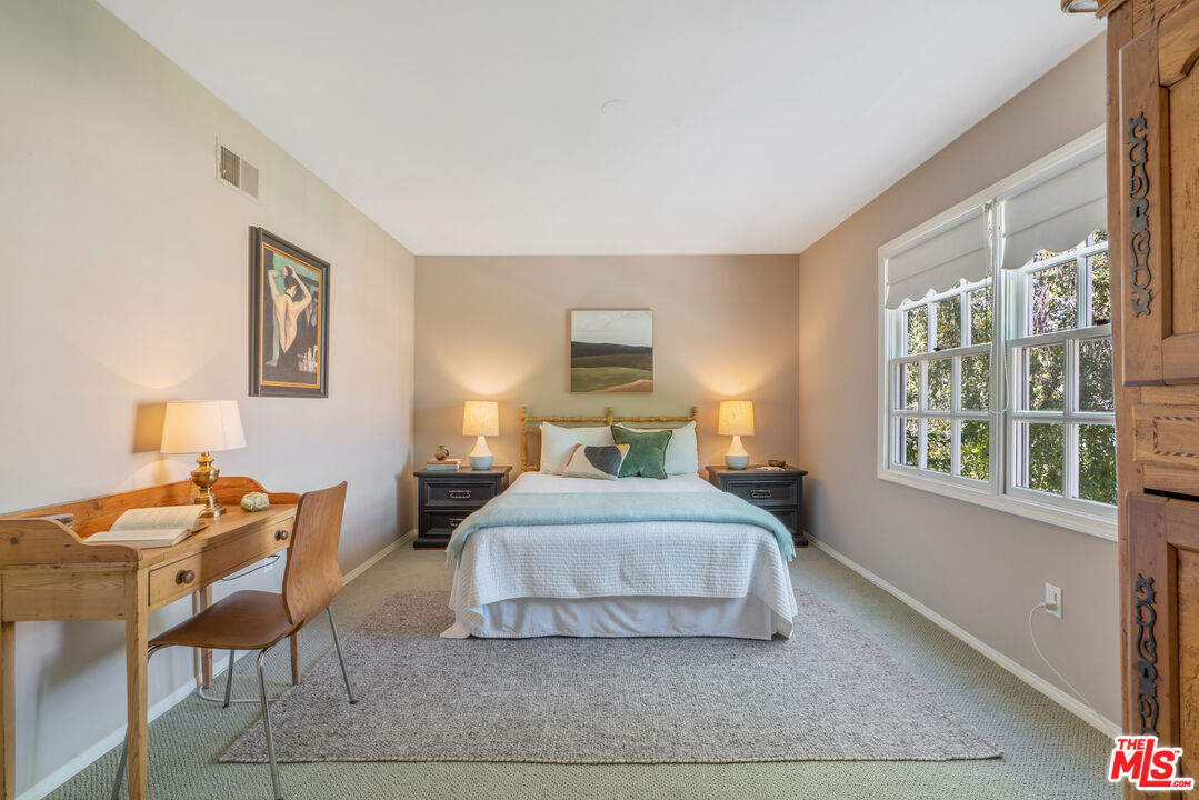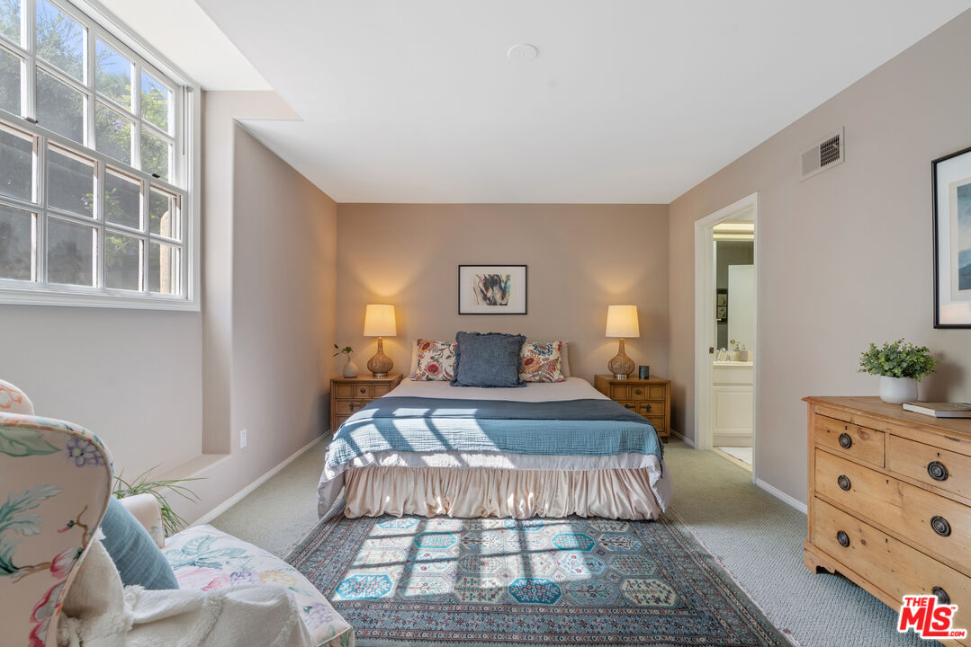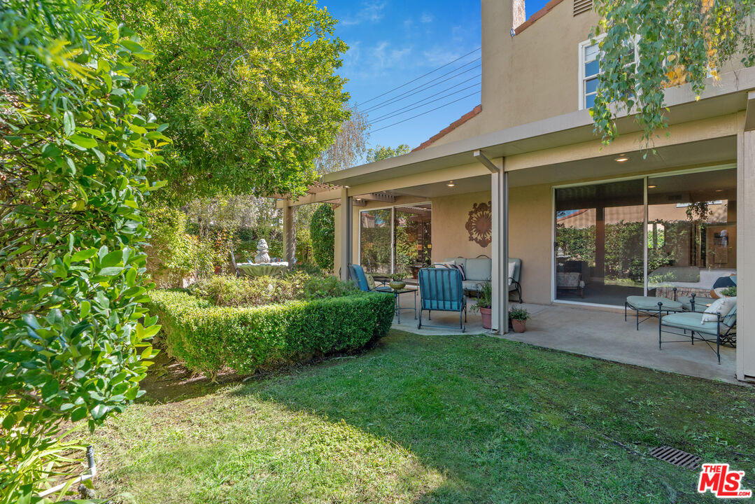 Welcome to this stunning two-story home in the coveted gated community of Creekside at Calabasas. Perfectly located just minutes from top-rated schools, the Calabasas Tennis & Swim Club, and the fine dining and premier shopping of Old Town Calabasas and The Commons. Step inside to an open, airy great room featuring soaring ceilings, and sliding glass doors that invite seamless indoor-outdoor living. The expansive living area showcases custom built-ins, a sleek fireplace and abundant natural light, creating an inviting atmosphere for both entertaining and quiet evenings at home. Glass doors lead to a serene, landscaped backyard and patio -- perfect for morning coffee or evening cocktails. The spacious dining room, bright kitchen, and cozy breakfast nook open to a charming enclosed courtyard. The first floor also includes a powder room, laundry area, and a generous primary en suite bedroom offering comfort, privacy and direct access to the patio and backyard with seating areas, and a tranquil setting. Upstairs, two additional bedrooms are separated by a versatile open space -- ideal for a family room, home office, or creative studio. A large bath, with a walk-in shower and double sinks, completes the second level. An abundance of closet and storage space throughout. Though title reflects a condominium, this is a fully detached home with no shared walls combining the privacy of a single-family residence with the security and convenience of a gated community. Owners also have the option to enjoy access to Lake Calabasas for a small annual fee. Whether you're seeking a move-in ready home, or a canvas to personalize and update at your own pace, this property presents a rare opportunity to experience the best of Calabasas living in one of its most desirable neighborhoods.