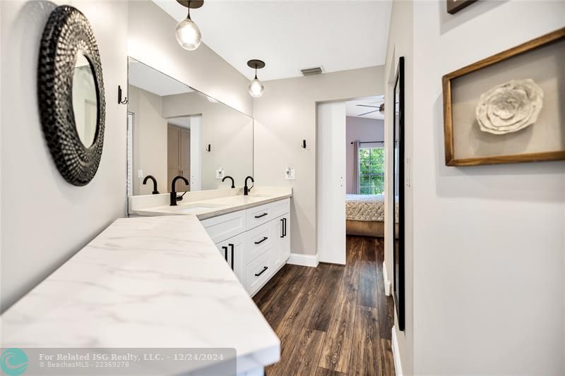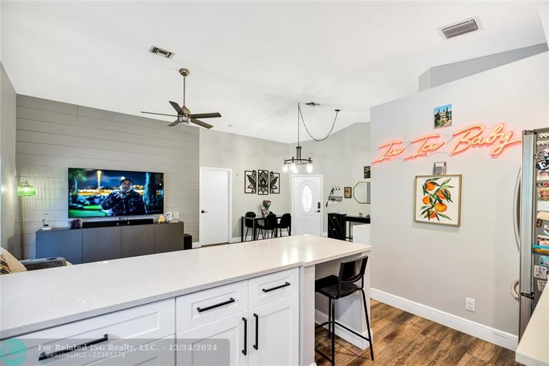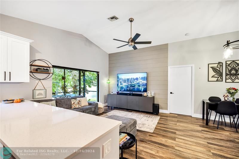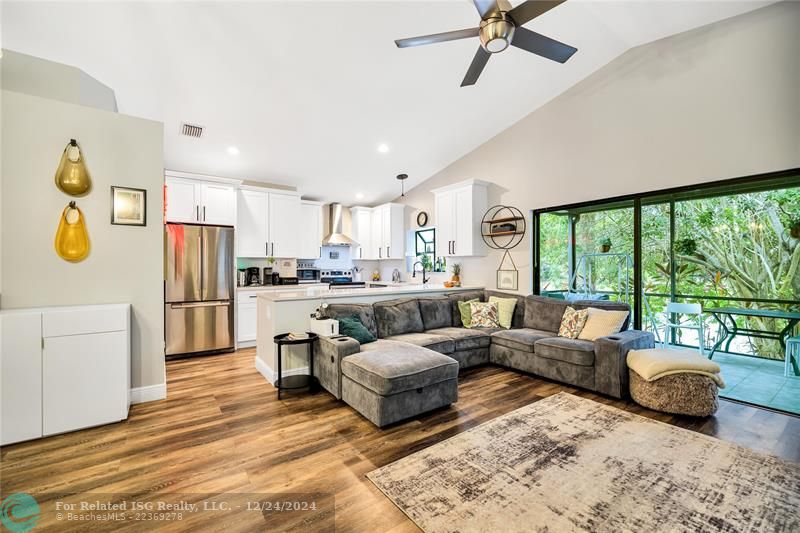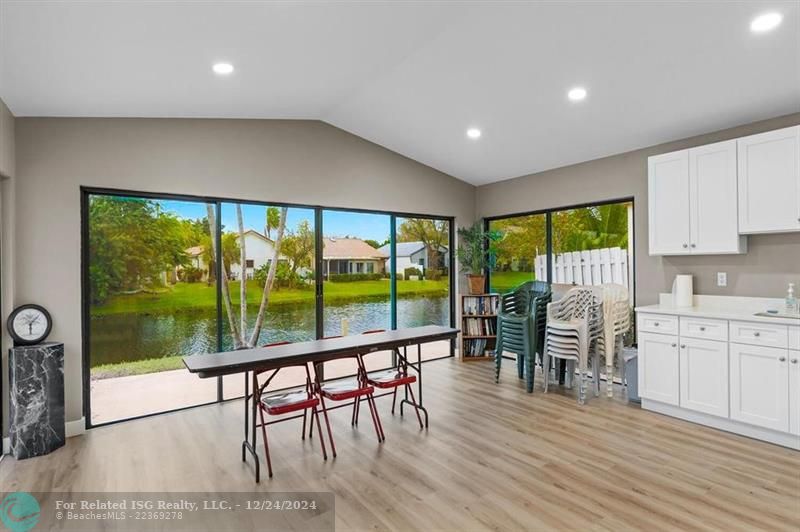 RARE OPPORTUNITY TO OWN IN PINEWOOD COVE! A WELL-MANICURED AMERICAN HERITAGE COMMUNITY IN DELRAY BEACH! No MEMBERSHIP required! This TRANQUIL LAKEFRONT HOME hosts 3-bedrooms, 2-bathrooms, and 1-car garage! Home features: an open-concept living and dining area, vaulted ceilings, a split bedroom floor plan, and smart thermostat and doorbell. Beautifully remodeled kitchen has quartz counter-tops, and SS appliances & hood. Primary bedroom has a spacious en-suite with double vanities, modern shower and custom closet built-ins. Water views can be enjoyed from the kitchen, the great room and the primary bdrm. A 384 sq ft Screened Enclosure and Patio w fountain views on the water, truly make this backyard space inviting. Located less than 5 miles from Downtown Delray and picturesque beaches.