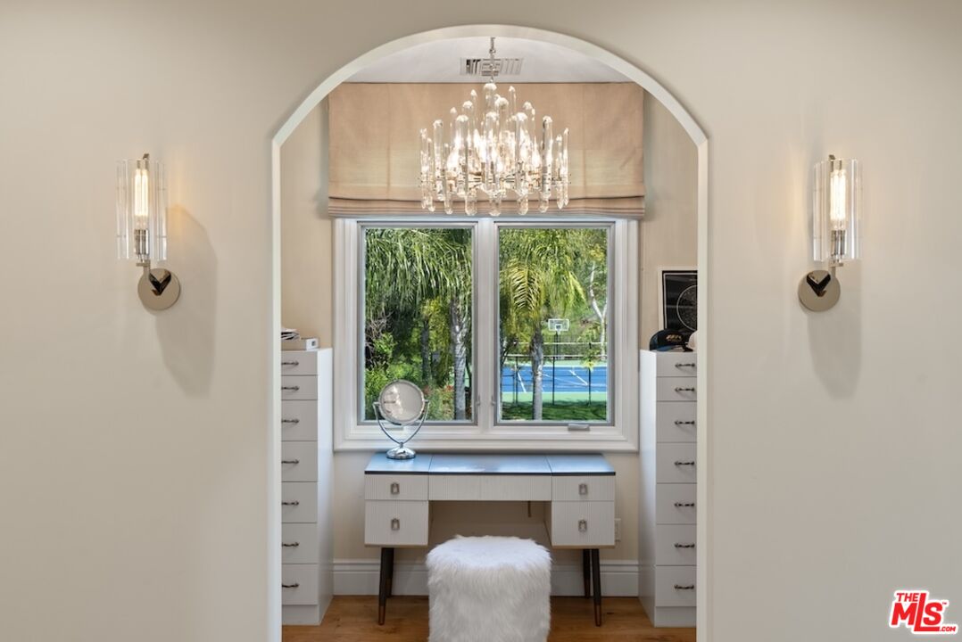 One-of-a-kind Trophy Estate located in the Most Prestigious Gated Development known as "Park South Estates" Prime Calabasas location. This incredible Contemporary Mediterranean Estate is nestled at the end of a private cul-de-sac and features 6 beds, 9 baths with approx 8,152 sq ft sited on approx 8+ private manicured acres. This beautifully designed estate has everything that anyone could ever ask for. It feels like you are living in your own private resort. This estate has the utmost impeccable attention to detail with quality and craftsmanship second to none. The home features a Grand Formal entry w/ soaring ceilings which leads you to a light filled 2-story living room with a custom 30-foot matched marble fireplace, custom lighting and a beautiful formal dining room. White Oak hardwood floors throughout all living areas, custom designed window coverings, Chef's kitchen w/ massive island, quartz countertops, stainless Sub Zero Refrigerator & Freezer, Wolf 6 burner range, Wolf Stainless Double Ovens, Dual SS Dishwasher, Micro and more. Wonderful breakfast bar, walk-in pantry adj to the kitchen, and living room w/ stone fireplace and large built-in custom cabinetry. Secondary formal living room, billiards room with full wet bar & 21 seat commercial style theater adorn the other side of the first floor. There are several large entertaining pavilions to enjoy the tranquility and greenbelt views. The lush private back yard which is truly an oasis has built-in BBQ, covered outdoor dining patio & Cabana with TV & Fireplace, beach entry lagoon style pool/spa w/ waterfall, huge lawn & professional lighted N/S tennis court and sports court. This amazing yard also boasts your own private garden, citrus / fruit / avocado trees and storage sheds. Upstairs features a private master suite w/ fireplace, three walk in closets, mountain and valley views, luxurious bath w/ soaking tub & gym/office. There are 4 additional bedroom suites upstairs w/ two massive balconies + office/conference area in the center of the home. There is an addtl bedroom suite off kitchen, two garages (4 cars) all with custom built high end storage cabinets and acrylic floors perfect to store your super cars or classics & space for 10+ cars in the rounded entryway. This property also has a temperature controlled wine cellar and a features a rarely found safe room / artillery room. This smart home features an RTI system which controls A/V systems throughout the home, HVAC, lights and cameras. The home is being offered fully furnished including all A/V systems and theatre equipment. If you are looking for an amazing property, this is a very rare find that has been meticulously cared for. Steps to the well known private Viewpoint School. Dont miss this amazing estate.