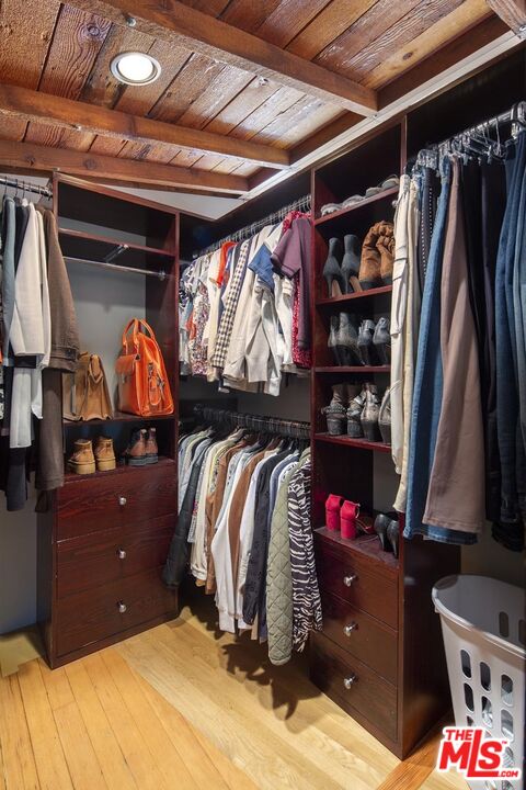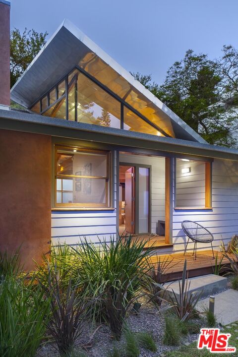 Just featured in Dwell and Mansion Global: "The Mahler / Adams Residence", 1924-1998, William Adams, Architect. The published studio / home of sculptor Anna Mahler, daughter of Austrian composer Gustav Mahler, is a remarkable demonstration of Mies van der Rohe's adage: Less is more. While memorializing them in the new hardwood floor surface in deference to Mahler, architect William Adams daringly removed living room, dining room, kitchen, bedroom walls, and ceilings creating an inspiring new space for modern living. The new open plan features spacious high-ceilinged living / dining space with fireplace. Remodeled kitchen with stainless appliances and corner banquette. A primary bedroom with en suite bathroom, and walk-in closet with handcrafted Mortise & Tenon cabinetry. The second bedroom can also function as an office and opens directly to the private exterior and into nature. A party-sized sundeck, sheltered by a canopy of shade trees, adorns the hillside and affords wide views of the surrounding canyon making it the perfect place to unwind or host friends. Carport for two cars with EV charging, as well as a driveway and parking pad in the front yard offers parking for 6 cars total. Situated in sylvan Beverly Glen with the prestigious Bel Air zip code, The Mahler / Adams Residence offers an artful blend of rich, bohemian history and warm contemporary architectural significance.