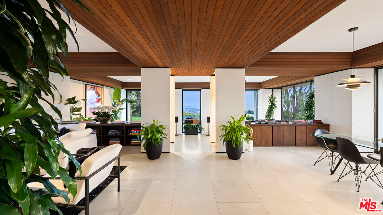 Perched above the city with panoramic views to the ocean, 10865 Savona Road is a striking architectural estate in the hills of Bel Air. Designed by a protege of iconic mid-century firm Buff & Hensman, this single-story home blends timeless sophistication with modern serenity. Clean lines, warm wood accents, and floor-to-ceiling glass create seamless indoor-outdoor flow and bathe the interiors in natural light. The chef's kitchen features marble countertops and top-tier appliances, flowing into formal and casual entertaining areas. A sunken living room with custom built-ins and a statement fireplace anchors the home with style and comfort. The luxe primary suite opens directly to the pool and includes a spa-like bath with a soaking tub, dual vanities, and oversized shower. Additional guest rooms and a lounge/media room offer comfort and versatility. Outside, a resort-style setting awaits with a zero-edge pool, spa, fire pit, outdoor kitchen, and expansive views. A gated motor court and large grassy yard complete this rare offering - where architectural pedigree meets effortless California living.