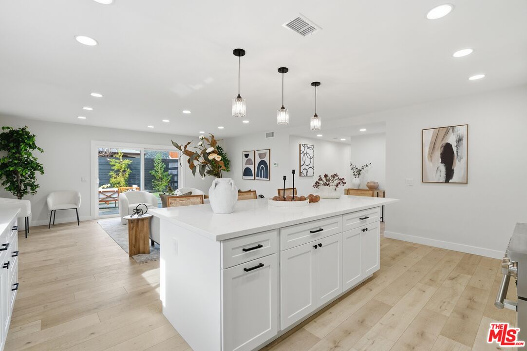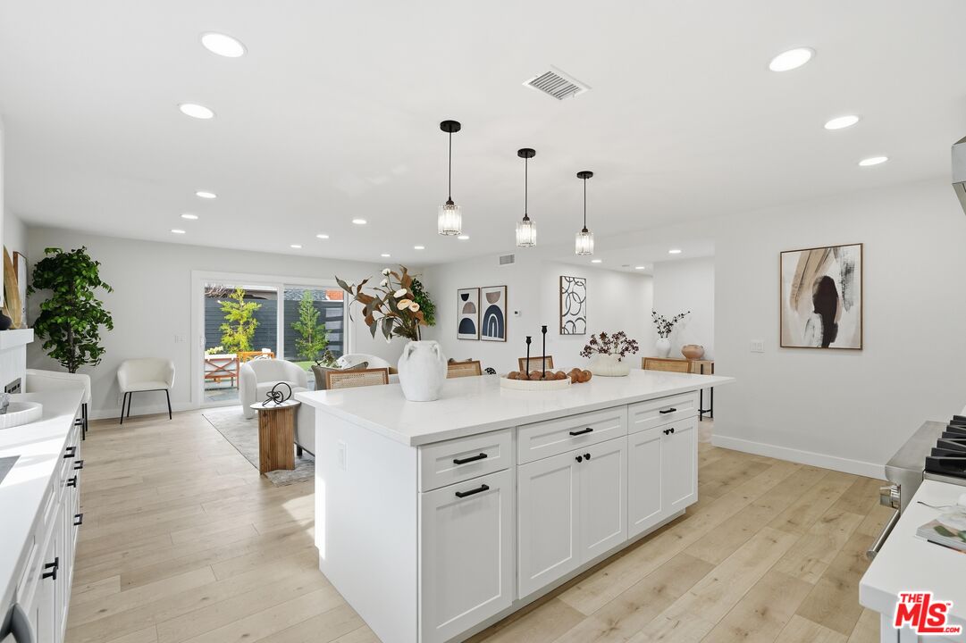 Welcome to this fully reimagined Huntington Beach residence, where modern coastal design meets everyday functionality in one of Orange County's most desirable beach communities. Thoughtfully renovated from top to bottom, this light-filled home showcases wide-plank flooring, an open-concept layout, and seamless indoor-outdoor flow ideal for both entertaining and daily living. The heart of the home is the designer kitchen, featuring crisp white shaker cabinetry, quartz countertops, a generous center island, stainless steel appliances, and elegant pendant lighting. The kitchen opens effortlessly to the living and dining areas, anchored by a custom tiled fireplace and expansive sliding glass doors leading to the private backyard. Outside, enjoy a low-maintenance, resort-style yard with modern concrete pavers, artificial turf, privacy fencing, and a dedicated fire-pit area perfect for entertaining or quiet evenings at home. The bathrooms are spa-inspired, highlighted by a freestanding soaking tub, walk-in glass shower, contemporary fixtures, and refined tile work. Additional upgrades include New High Efficiency AC and Heating, recessed LED lighting throughout, smooth ceilings, and a freshly finished garage with epoxy flooring. Ideally situated in Huntington Beach, this home offers convenient access to world-famous beaches, coastal trails, surf culture, shopping, dining, and top-rated schools, with easy connections to Pacific Coast Highway and nearby freeways. Enjoy the best of Southern California coastal living from morning beach walks to sunset evenings just minutes from your front door.