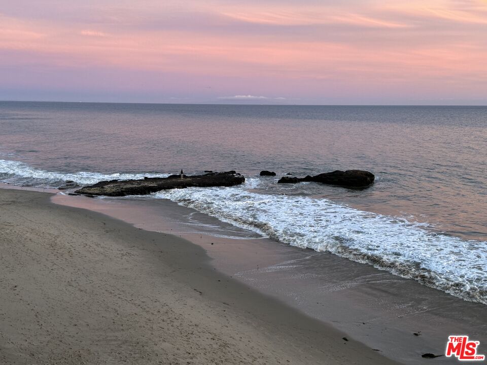 Fully furnished and ready for move-in immediately!! This property spans 50ft on the deepest section of beach on Malibu Rd & has unobstructed panoramic ocean views of Santa Monica Bay, Catalina & Point Dume. The property features a dual gated entry, driveway w/ ample secure parking & courtyard that leads to the custom fossilized front door. The main floor is expansive & features an open floor plan w/ formal dining area, living area w/ double-height ceiling & newly remodeled kitchen w/ a massive marble island, custom cabinetry & brand-new stainless-steel appliances by Viking and Wolf. An abundance of natural light fills the space w/ a large skylight & floor-to-ceiling sliding glass doors that open to a large balcony w/ glass railings that span the width of the house. The primary suite encompasses the entire top floor w/ his & her walk-in closets, custom blue marble bathroom w/ dual vanity & water closets, skylight & soaking tub w/ ocean views. The primary bedroom features a fireplace & sliding glass doors that lead out to the balcony & west facing sunset views. The bottom floor features three additional en-suite bedrooms, one of which is oceanfront w/ direct balcony access & the other has triple bunkbeds. Lastly, there is an oceanfront den, laundry room & private beach access. Centrally located off PCH in the highly desirable Malibu Rd community w/ easy access to world class dining at Nobu or Lucky's, designer shops in the Country Mart & countless miles of hiking at Bluff's Park & Puerco Canyon.
