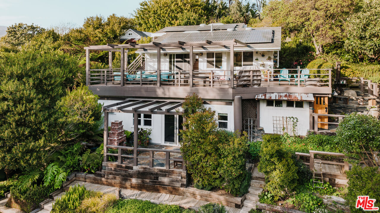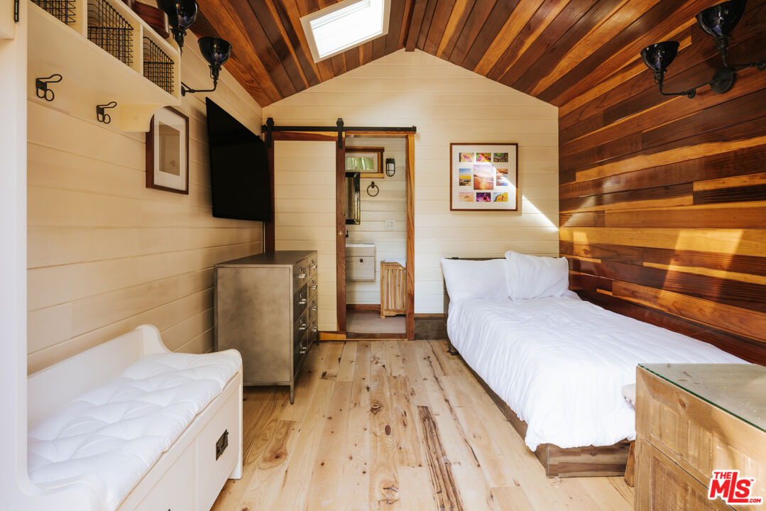 Beyond a gated entry, this sprawling coastal compound unfolds with unexpected charm, privacy, and unforgettable design. A covered front entrance with a glass door welcomes you into the main residence, immediately setting the tone for laid-back luxury. To the left, the kitchen features stone tile floors and soaring wood-beamed ceilings with recessed lighting. Deep green stone counters and warm wood cabinetry create a rich, organic feel, paired with top-of-the-line appliances including a Wolf six-burner range with hood, Miele dishwasher, Sub-Zero see-through fridge with freezer drawers, and a central island with bar seating perfect for casual gatherings and elevated cooking alike. Open to the main living space, the home transitions into a great room filled with natural light from a central skylight. Wood floors and wood-clad vaulted ceilings add warmth, while the stone fireplace serves as a beautiful focal point. A built-in speaker system and sliding glass doors that lead to the backyard complete the seamless indoor-outdoor experience. The adjacent dining area offers a comfortable place to entertain, with views out to the gardens. Off the main living area are several bedrooms, each offering privacy, light, and character. The first bedroom features wood floors, sliding mirrored closet doors, and access to the backyard through glass doors. A hallway bathroom nearby includes a skylight, shower over tub, stone counters, vanity, and built-ins. The primary suite offers wood floors, French doors to a private patio, and a large closet with custom built-ins. Its en-suite bath is finished with stone counters, double sinks, a skylight, and a large shower. Another bedroom off the front entry offers wood floors, sliding doors to the backyard, an en-suite bath with walk-in shower, and a private entrance to the garage.The two-car garage includes two sets of washers and dryers, a secondary fridge, sink, and extensive built-in storage. Outside, the backyard becomes a private retreat with a wood deck strung with lights, multiple dining and lounging areas, and an in-ground Jacuzzi surrounded by built-in seating. The outdoor kitchen area features a Lynx BBQ, sink, counters with bar seating, and a mini fridge. An additional surfboard storage area, grassy lawn, koi pond with waterfall feature, and multiple outdoor showers make this property feel like your own private resort just steps from the beach path. The second main residence, set privately on the property, offers its own complete home with wood floors, sliding glass doors, and a full kitchen equipped with butcher block and stone counters, a Whirlpool dishwasher, Viking hood fan, trash compactor, double oven with broiler, and Sub-Zero fridge. An adjacent living area and deck offer relaxing views and outdoor dining space. Upstairs, a vaulted wood-beam bedroom is paired with a spacious bath featuring a double vanity, shower stall, and linen storage. Across from this home sits a surf shack and additional outdoor showers for easy beach living. Elsewhere on the property are three unique tiny homes, each with its own function and charm. The first features wood floors, skylights, a mudroom, a private shower and vanity, and a nearby sauna nestled off a stone path. The second offers a kitchenette, mini fridge, bar seating, a powder room, and an outdoor shower. The third tiny home, attached below the second main house, includes a bedroom with sliding glass doors, mini kitchen, built-ins, an en-suite bath with shower and bidet, and a private deck with a mini fireplace. Adding to the resort-like experience are a dedicated yoga and meditation pavilion, a tiki hut with surfboard storage, and a playful area with BB gun targets. With its rare blend of casual elegance, functional flexibility, and proximity to the beach, this one-of-a-kind property captures the essence of laid-back California luxury.