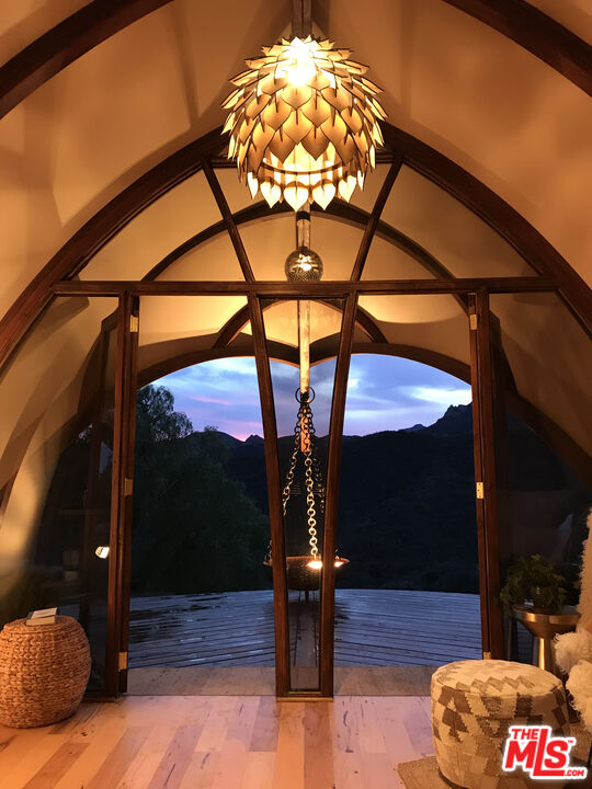 Seller is the owner of a superior wildfire defense company; the property currently has a fire suppression system installed to protect all buildings. Seller is open to discussing installing a fire suppression system on the new owner's future build. Nestled amidst the rolling hills of Malibu, California, "CastleKeep" stands as a beacon of serenity and luxury. Surrounded by lush greenery and commanding panoramic views of the Santa Monica Mountains, this address embodies the essence of Santa Monica Mountain living at its finest. Each corner of the 9.68 acre property invites exploration, from the expansive outdoor living spaces perfect for entertaining to the intimate alcoves ideal for quiet reflection. Build your own sanctuary where one can escape the hustle and bustle of everyday life and indulge in the epitome of Malibu's unparalleled beauty and tranquility. This is a once-in-a-lifetime opportunity to build your very own "Gesner" that Harry himself designed for this property. The property currently has multiple structures. Well & 10,000 gal water tank, New 10KW Solar system, AutoStart-18KW Generator, "Cocoon" living space designed by Harry Genser, Theater seating, Interior kitchen, Outdoor kitchen, Showers & toilets separate from Cocoon, Office and lounge, 2 in-ground spas, Viewing deck, Outdoor BarCocoon and Power House are Movable on a trailer. Broker and Broker's Agents do not represent or guarantee square footage, lot size, or lot dimensions, permitted or unpermitted space, or renovations. It is the Seller's responsibility to inform the status of the 200 SQ-FT office to be used as an office. The Seller will resubmit all plans during escrow.