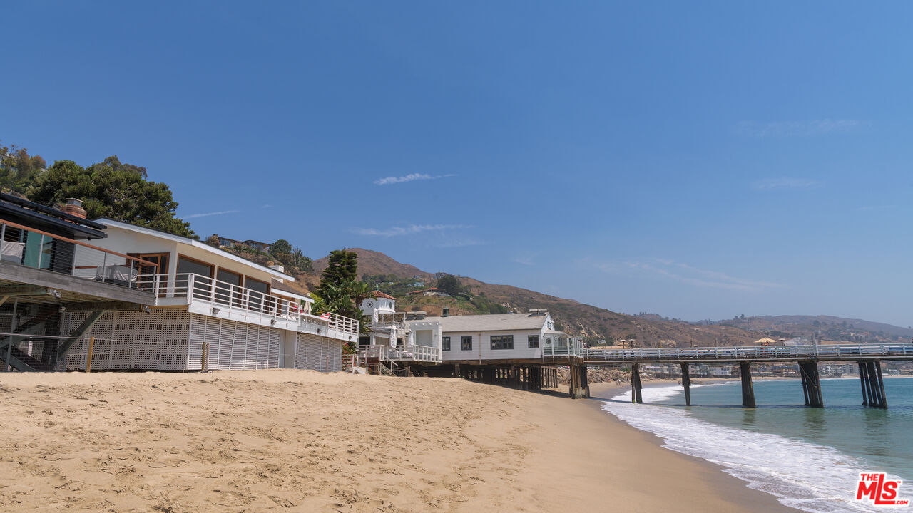 Introducing a rare double-lot beachfront sanctuary with 74 of ocean frontage on Malibu's coveted Surfrider Beach. This single-story coastal retreat blends sweeping ocean views with architectural grace. A gated arrival reveals a motor court with parking for multiple vehicles and a private garage.Inside, the expansive living and dining pavilion features vaulted ceilings, hardwood floors, a fireplace, and three oversized ocean-facing windows framing panoramic vistas including the iconic Malibu Pier. This space flows seamlessly onto a wraparound porcelain-tiled oceanfront deck, perfect for indoor-outdoor entertaining.The gourmet kitchen offers a granite island, skylights, Sub-Zero and Thermador appliances, and captivating ocean views.The primary suite delivers ultimate privacy and luxury with a marble fireplace, glass sliders opening directly to the deck with Malibu Pier panorama, an oversized custom closet, and a spa-like bathroom with steam shower, soaking tub and heated floors. Three additional bedrooms, two ensuite with sunset deck access, provide stylish accommodations for family and guests.Modern upgrades include a whole-house generator, EV charger, Sonos system, and porcelain flooring throughout the primary suite and deck. With proven rental history, (partial seawall protection), and a premier location near Nobu, Soho House, and Malibu Country Mart, this refined oceanfront estate offers rare scale, prestige, and iconic Malibu Pier views.