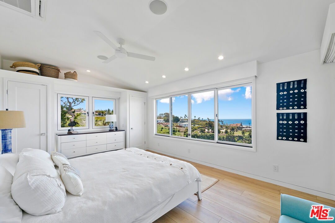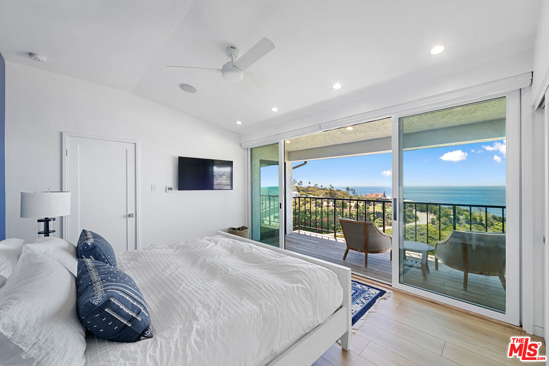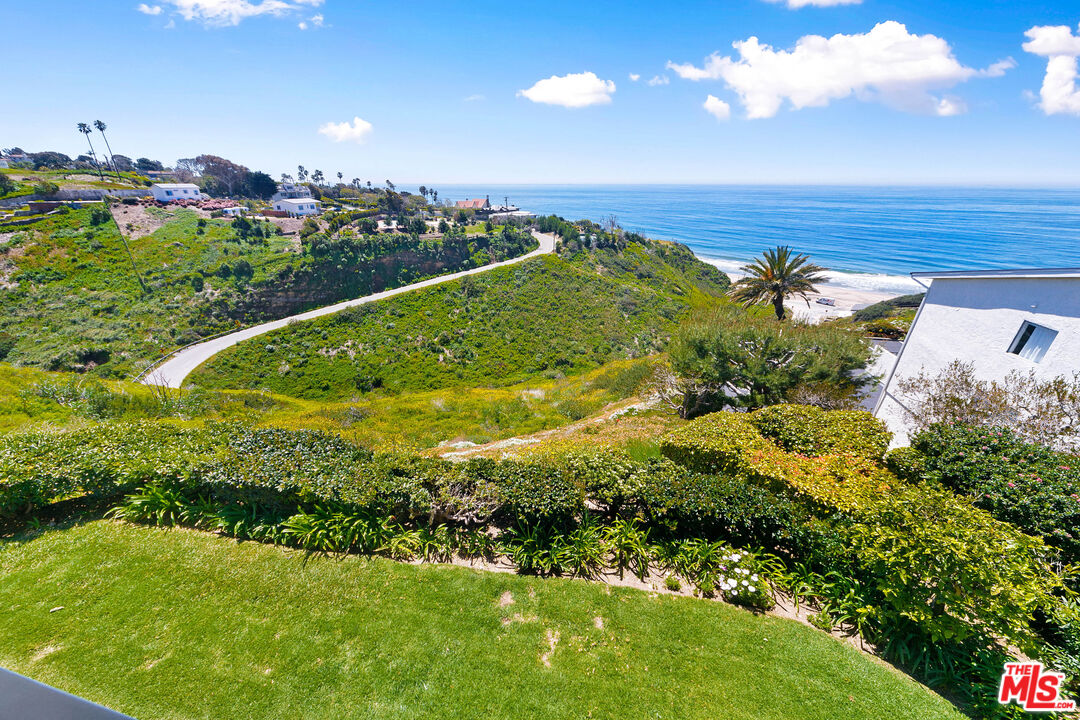 An exceptional bluff-top residence with unobstructed white-water ocean views above Westward Beach. Located in the prestigious, guard-gated Zuma Bay Villas, this fully renovated end-unit offers privacy, sophistication, and effortless coastal living. Privately positioned on a quiet cul-de-sac, the home captures panoramic ocean vistas and white water views from multiple rooms and outdoor spaces. Designed for turnkey luxury, it is offered fully furnished with curated pieces, including Restoration Hardware selections, for immediate enjoyment. The custom floor plan features three spacious bedroom suites upstairs, two with direct, head-on ocean views. The gourmet kitchen showcases striking Blue Bahia granite countertops and premium Bosch, Sub-Zero, and Miele appliances, opening to a bright living area with sliding glass doors that extend to teakwood decks and a lush garden setting perfect for indoor-outdoor entertaining. Modern smart-home upgrades include EMTEK keyless entry, Ring security, Lutron lighting, motorized shades, and a Sonos sound system. Additional features include newer HVAC, ceiling fans, water heater, and an immaculate two-car garage. Zuma Bay Villas offers 24-hour guard gated security, a heated pool and spa, north/south tennis courts, and private beach access via direct steps to the sand. A rare opportunity to own a move-in-ready oceanfront retreat with unobstructed views combining modern luxury with the best of Malibu's coastal lifestyle.