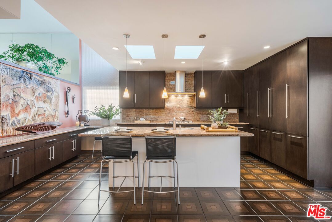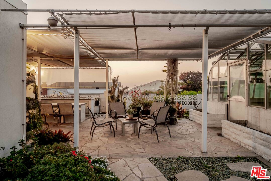 A timeless 1963 Sunset Mesa classic with a thoughtful modern touch, this mid-century residence is perched above the coastline, offering sweeping ocean and mountain views, golden sunsets, glowing sunrises, and refreshing ocean breezes year-round. Set on a quiet, view-rich street, the home embodies the indoor/outdoor lifestyle that defines this coveted coastal enclave. Approached via tiered garden steps, the sun-filled leaded glass entry opens to the main level, where an updated kitchen features a Miele range, bar counter seating, a built-in cabinet refrigerator, and skylights that bathe the space in natural light. Sliding glass doors connect the kitchen to a serene backyard and patio, complete with a greenhouse and rose garden, an inviting retreat for relaxation or entertaining. At the heart of the home, a stylish dining room with glass-paneled walls creates an airy, light-filled ambiance. Both bedrooms are generously sized and feature en suite bathrooms, offering comfort, privacy, and seamless access to outdoor patios. The primary suite includes a spacious walk-in closet. Just a few steps above the main level, the living room occupies its own elevated space and is arguably the showpiece of the home. Framed by sliding glass doors, the room opens to a view deck overlooking the Santa Monica Bay, where ocean vistas meet twinkling city lightsan inspiring setting day or night. Located in Sunset Mesa, a community known for its architectural character, coastal views, and strong sense of neighborhood, this property represents both a special opportunity and a hopeful chapter as the area continues to rebuild and move forward after recent fires. With unbeatable access to both Malibu and the Palisades, this is one of the most desirable and convenient coastal pockets in Los Angeles, offering privacy, views, and connection in equal measure.