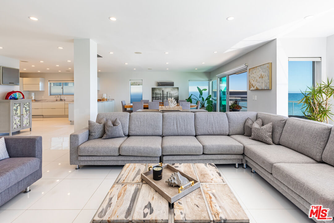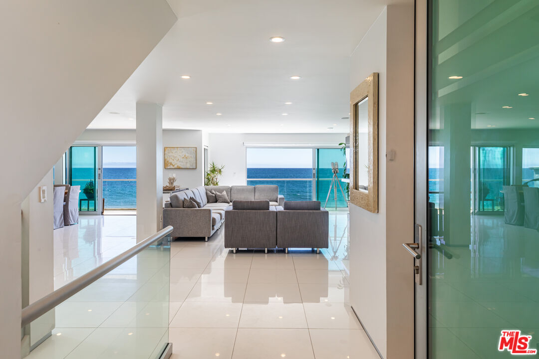 Discover unparalleled coastal elegance in this breathtaking oceanfront estate, perfectly poised on Malibu's pristine shores with direct beach access via a private staircase and mesmerizing 180-degree Pacific vistas. This contemporary three-level masterpiece offers four bedrooms, three and a half bathrooms, floor-to-ceiling glass walls that invite natural light to dance across every room, and multiple ocean-view terraces perfect for savoring sunsets or hosting intimate gatherings. The chef's kitchen, a culinary dream with top-tier appliances and sleek cabinetry, anchors the main residence, while an attached two-bedroom, one-bath guest suite with a full kitchen, washer/dryer, and private entrance provides a versatile retreat for guests or family. With a three-car garage plus parking for four or more vehicles, and a prime location steps from scenic hiking trails, vibrant restaurants, chic boutiques, and everyday essentials, this sanctuary blends modern sophistication, privacy, and the timeless allure of Malibu's coastal lifestyle.