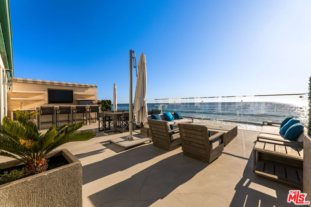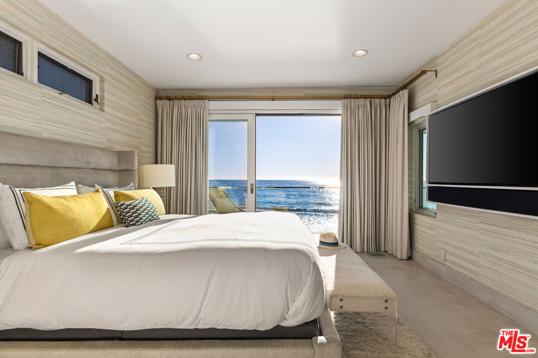 ** FULLY FURNISHED & FULLY EQUIPPED ** Villa Pacifica is an extraordinary oceanfront sanctuary on serene Yerba Buena Beach, where sweeping Pacific views meet refined Mediterranean design. Just minutes from Malibu's private airport, this exceptional villa captures the essence of elevated California coastal living.Behind private gates, an enchanting courtyard welcomes you with ocean views and a barrel sauna creating a true resort-style retreat. Expansive decks overlook the Pacific, including a stunning rooftop terrace with a built-in fireplace, perfect for sunset gatherings. Inside, walls of glass fill the home with natural light, highlighting warm Spanish tones and elegant finishes. The oceanfront primary suite offers breathtaking water views, while guest bedrooms, a private home theater, and a marble-appointed chef's kitchen with a large center island complete the inviting layout. The outdoor space is incredible for entertaining, featuring hot tubs, a large outdoor TV, a full bar, and a retractable awning for seamless indoor-outdoor living. With direct access to a private sandy beach, world-class surf, and Catalina and Channel Islands views, this home truly defines Malibu beachfront living. Meticulously maintained with weekly deck service and monthly window washing, the property is kept in pristine condition inside and out. Come see this gem for yourself you won't be disappointed. Available for short term lease price may vary.