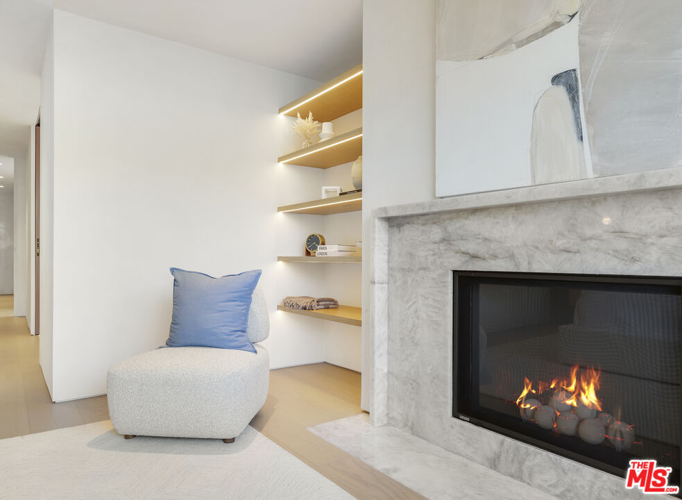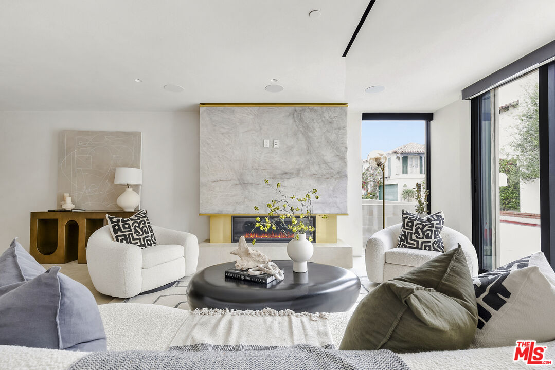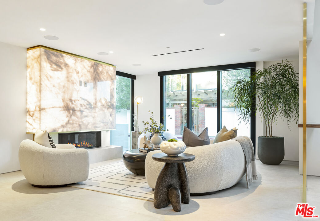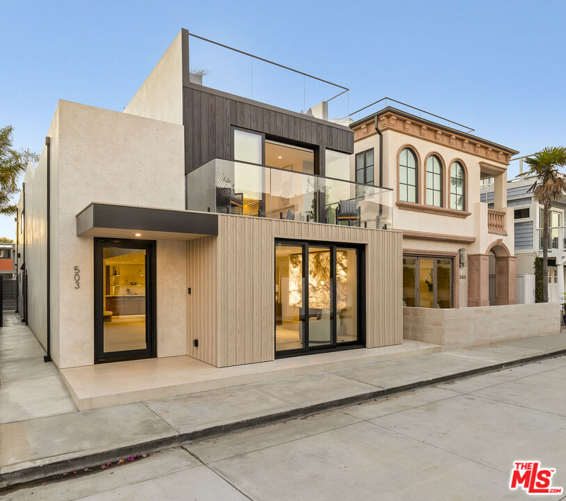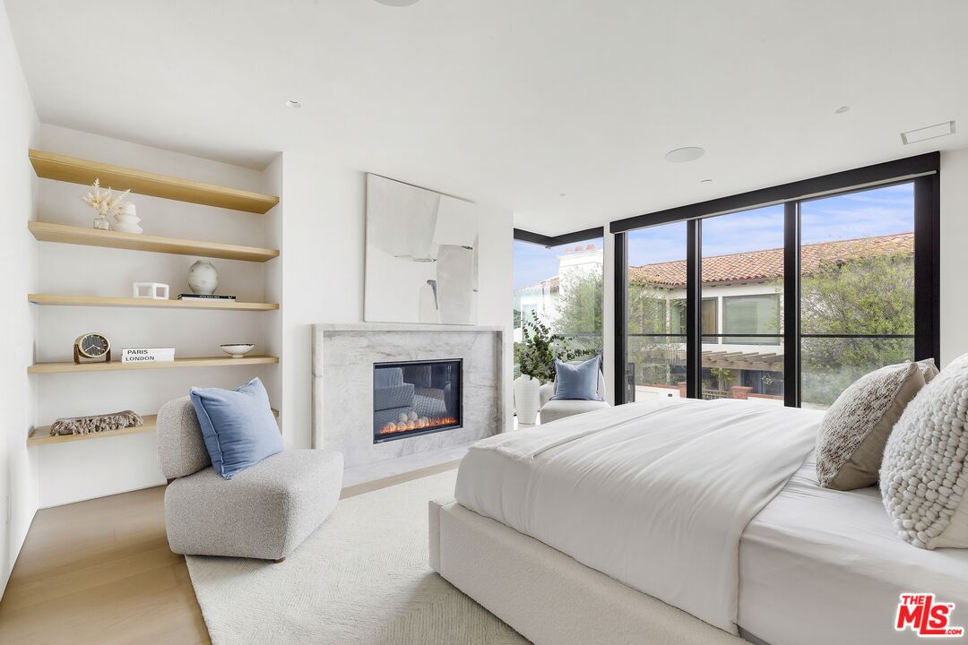 Just one block from the water on the Balboa Peninsula, this newly rebuilt coastal residence delivers a rare combination of architectural restraint, elevated materials, and effortless indoor-outdoor living. Completed in 2025, the home spans approximately 3,577 square feet with four bedrooms, four full baths, and two powder rooms, designed for both everyday comfort and hosting at scale. A calm, gallery-like palette sets the tone throughout, with limewashed walls, wide-plank hardwood floors, and rich walnut detailing creating a sense of warmth and quiet sophistication. The main level is designed for entertaining, anchored by a striking living space with a backlit Crystallo stone fireplace, walnut paneling, and refined glass partitions that allow light to move freely throughout the home. The kitchen and adjoining pantry blend function and beauty with walnut cabinetry, Arabescato Gold honed marble surfaces, and a serious appliance lineup that supports real cooking and effortless gatherings, including a Gaggenau cooktop, Sub-Zero refrigeration, a Miele oven, dishwasher, and built-in coffee maker, plus a Wolf hood. Upstairs, an additional living and bar area extends the home's versatility with custom walnut cabinetry and Sub-Zero wine and beverage fridge, ideal for entertaining without bringing the whole party downstairs. Each bedroom suite is finished with spa-level baths wrapped in curated natural stone, custom vanities, and premium fixtures, while the primary suite stands apart as a true retreat with its own Crystallo stone fireplace, layered white oak detailing, and a serene bath finished in White Rhino and Thassos marble. Crowning the home is a rooftop deck built for year-round entertaining, with a full Thor outdoor kitchen featuring a pizza oven, sink, grill, and fridge, plus a gas firepit, integrated JBL speakers, and planters on a drip system. It's an ideal setting for sunset dinners, relaxed evenings, and hosting under the coastal sky. Additional highlights include a fully integrated smart-home system with Lutron RA3 keypads, a two-car garage, and a location that places the water and vibrant peninsula lifestyle just outside your door. Modern, refined, and thoughtfully executed, 503 J Street offers a turnkey opportunity for those seeking a coastal home that balances design, comfort, and proximity to the water, whether as a primary residence or an elevated Newport Beach retreat.