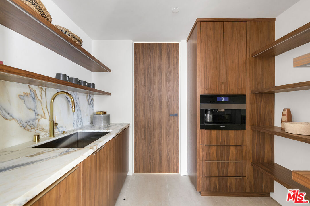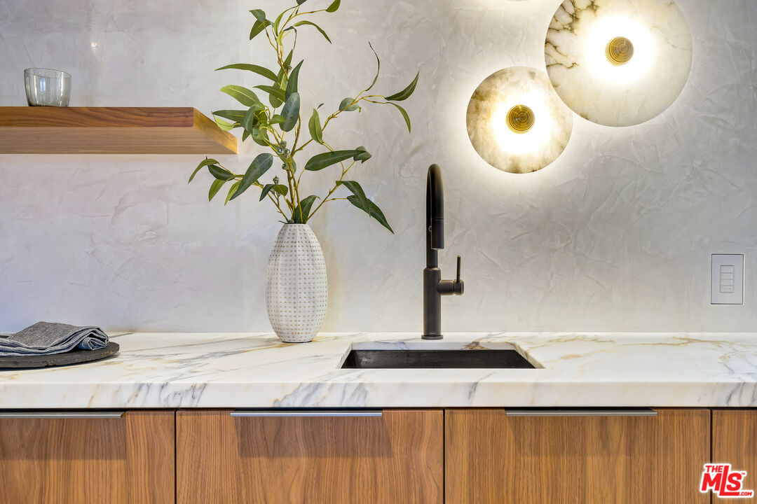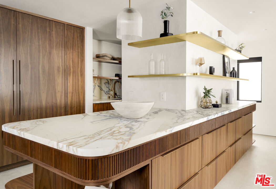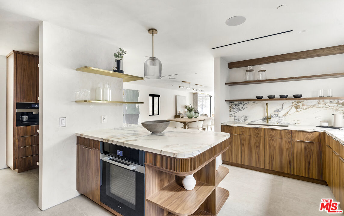 Just one block from the water on the Balboa Peninsula, this newly rebuilt coastal residence delivers a rare combination of architectural restraint, elevated materials, and effortless indoor-outdoor living. Completed in 2025, the home spans approximately 3,577 square feet with four bedrooms, four full baths, and two powder rooms, designed for both everyday comfort and hosting at scale. A calm, gallery-like palette sets the tone throughout, with limewashed walls, wide-plank hardwood floors, and rich walnut detailing creating a sense of warmth and quiet sophistication. The main level is designed for entertaining, anchored by a striking living space with a backlit Crystallo stone fireplace, walnut paneling, and refined glass partitions that allow light to move freely throughout the home. The kitchen and adjoining pantry blend function and beauty with walnut cabinetry, Arabescato Gold honed marble surfaces, and a serious appliance lineup that supports real cooking and effortless gatherings, including a Gaggenau cooktop, Sub-Zero refrigeration, a Miele oven, dishwasher, and built-in coffee maker, plus a Wolf hood. Upstairs, an additional living and bar area extends the home's versatility with custom walnut cabinetry and Sub-Zero wine and beverage fridge, ideal for entertaining without bringing the whole party downstairs. Each bedroom suite is finished with spa-level baths wrapped in curated natural stone, custom vanities, and premium fixtures, while the primary suite stands apart as a true retreat with its own Crystallo stone fireplace, layered white oak detailing, and a serene bath finished in White Rhino and Thassos marble. Crowning the home is a rooftop deck built for year-round entertaining, with a full Thor outdoor kitchen featuring a pizza oven, sink, grill, and fridge, plus a gas firepit, integrated JBL speakers, and planters on a drip system. It's an ideal setting for sunset dinners, relaxed evenings, and hosting under the coastal sky. Additional highlights include a fully integrated smart-home system with Lutron RA3 keypads, a two-car garage, and a location that places the water and vibrant peninsula lifestyle just outside your door. Modern, refined, and thoughtfully executed, 503 J Street offers a turnkey opportunity for those seeking a coastal home that balances design, comfort, and proximity to the water, whether as a primary residence or an elevated Newport Beach retreat.
