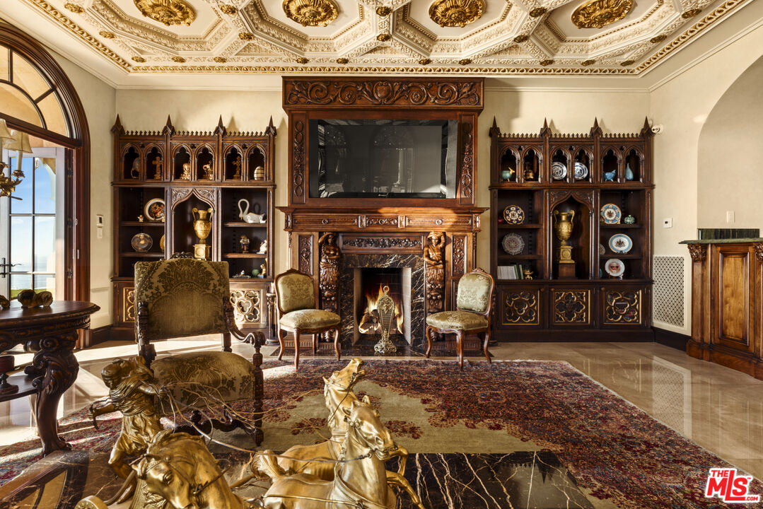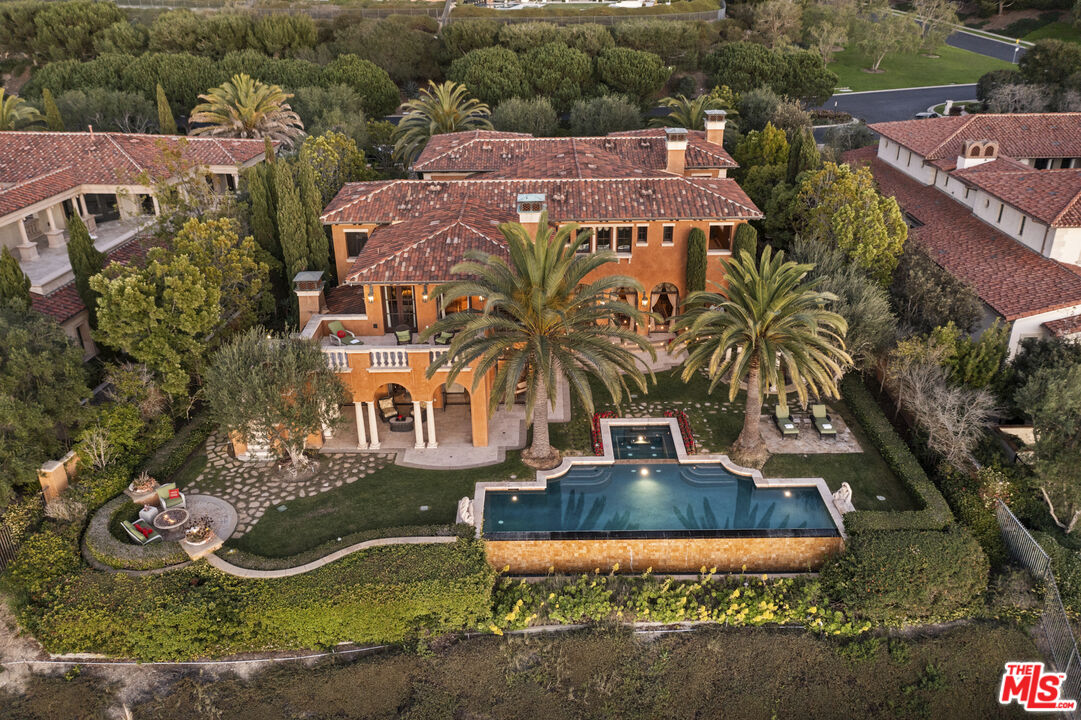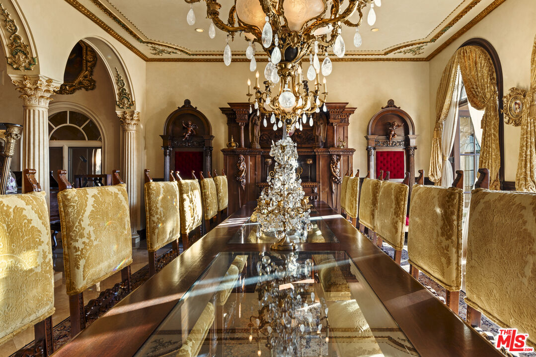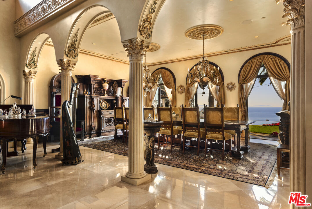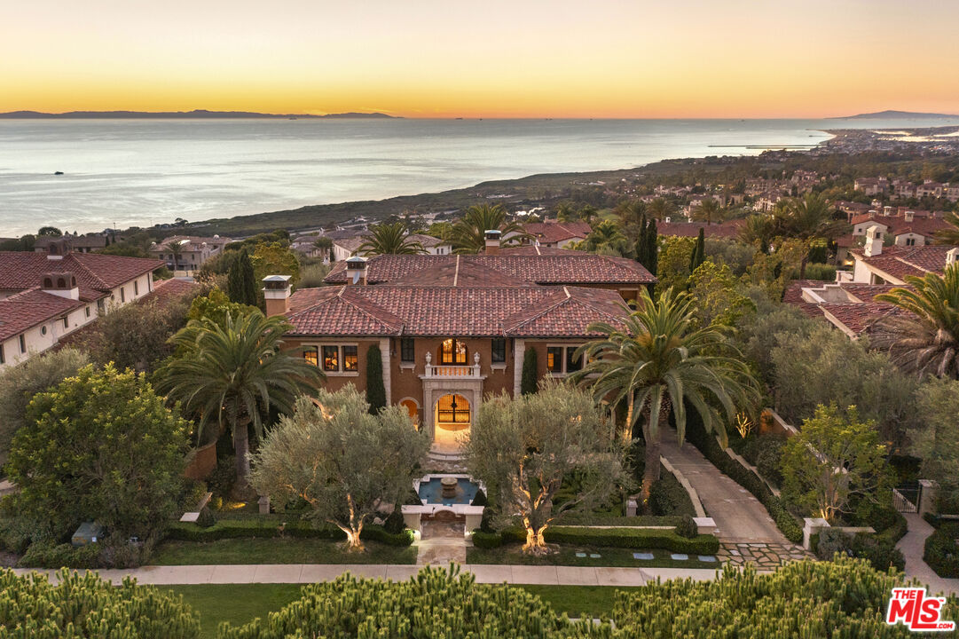 Chateau Soleil is a French chateau-inspired masterpiece perched atop the hills of Newport Coast within the ultra-exclusive Crystal Cove enclave. This extraordinary estate commands sweeping ocean views stretching from the peninsula to Catalina Island. Custom-built with uncompromising attention to detail, the residence showcases unparalleled craftsmanship and finishes throughout. Imported stonework, rare materials, and one-of-a-kind antique pieceseach thoughtfully curated from around the world, including every chandelier define the home's timeless elegance. Arrival is nothing short of cinematic, greeted by two mature olive trees and a manicured garden adorned with classical water features that guide you to the grand entrance. The opulent foyer opens to a breathtaking living room crowned by a dramatic 28-foot ceiling and illuminated by a palatial Louis XV Baccarat chandelier, crafted after a model by renowned French sculptor Jacques Caffieri. A grand staircasean exquisite replica of the Titanic railing with gold-plated detailing leads to the second level. Also on this floor, the office is a true work of art, featuring hand-carved mahogany wall panels and a richly coffered ceiling. The formal dining room centers around a magnificent 15-foot table accommodating up to 12 guests and opens to the expansive backyard with dramatic ocean views. The world-class kitchen is designed to Michelin-chef standards, outfitted with dual oversized refrigerators, Viking appliances, a La Cornue gas range, and an impressive center island. Adjacent is a casual dining area accented by a stunning Murano chandelier. The spacious family room embodies European elegance with a massive fireplace, ornate coffered ceilings, and multiple French doors that open onto the enchanting backyard. The residence offers four bedrooms, including one on the main level and three upstairs. The expansive primary suite is a private sanctuary featuring a sitting area with an elegant fireplace, French doors opening to a generous private terrace overlooking the pool and sweeping ocean views, and a lavish en-suite bathroom with a soaking tub, separate shower, and dual walk-in closets. An elevator descends to the lower-level entertainment floor, complete with a game area, full bar, and spa retreat featuring a steam shower and sauna. The neoclassical private cinema is a masterpiece of its own, adorned with red silk walls and rare figural torchres by Antoine Durenne, Paris, circa 1900. The backyard is a serene oasis with an infinity-edge pool and integrated spa, expansive lawn, romantic seating areas, and a fire pitall framed by breathtaking coastal vistas. The subterranean garage can accomodate 5-6 cars. The scale, craftsmanship, and architectural pedigree of Chteau Soleil make this estate a truly one-of-a-kind masterpiece, offering an unparalleled lifestyle of elegance, privacy, and world-class luxury.