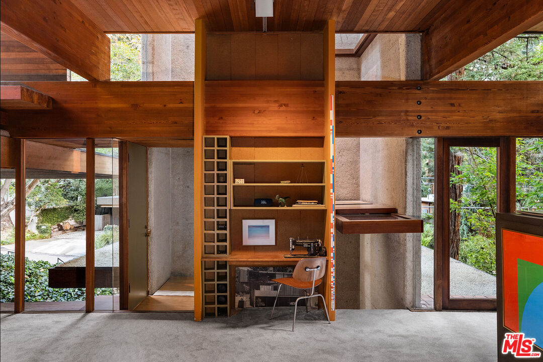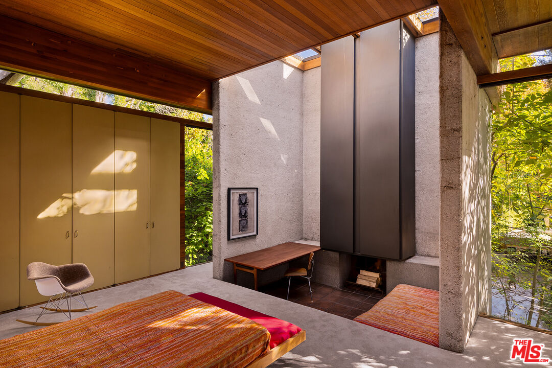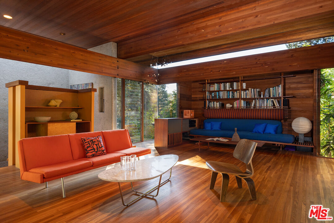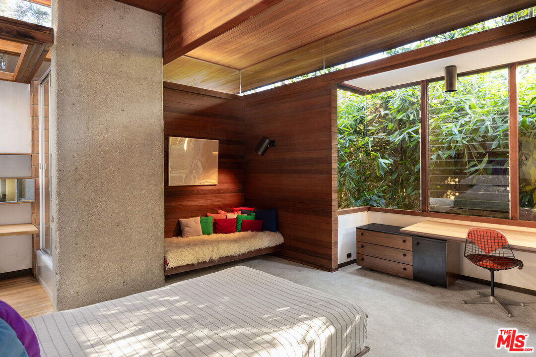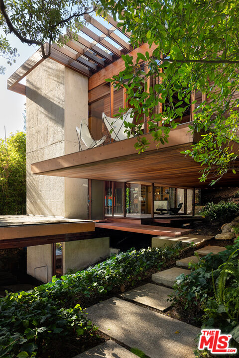 The Kappe Residence, Ray Kappe, FAIA is a quintessential Mid Century Modern Masterpiece, and personal residence of architect / educator Ray Kappe. Floating above it's hillside terrain, natural landscape is allowed to flow undisturbed beneath its strong framework, representing a marriage between pure structural logic and lyrical sculptural design. Beautiful redwood ceilings and redwood detailing combined with walls of glass and massive skylights create a continuous symphony of direct, indirect and dappled light that animates the house from sunrise to sunset. Considered a work that is disciplined and deliberate, yet seemingly free and effortless, the 5 bedroom, 5 bath structure is described as both " essay and poem", Traditional spatial boundries are erased by seven split levels encompassing 4,157 square feet. Described by the L.A. Times as " The Greatest house in Southern California", designated as a Cultural Historical Monument in 1996, the residence represents a master class in the "additive process of design", embracing the surrounding landscape of Rustic Canyon. The primary suite anchors the northeast wing, while a suite of 3 bedrooms occupies the southwest wing, providing a balance between communal and private life. Below the main living area lies a glass walled studio with stunning views of the rock garden. The open living area has serene tree top views and custom designed Kappe furniture. Four unique outdoor spaces, including a dramatic cantilevered deck, create the perfect indoor- outdoor experience. There is a stunning lap pool, spa, sauna and cabana with additional kitchen and bath. The estate is a modern vessel for enduring legacy, a global icon of residential architecture that continues to be a mecca for scholars and admirers of iconic architecture worldwide. The distinguished provenance is deeply intertwined with Los Angeles history, as it functioned as Kappe's residence , office and creative studio, gestating the inspiration & design for over 200 of his projects. As the "birthplace" of SCI-Arc, it represents a singular opportunity for the stewardship of a national treasure. Shown to pre-qualified clients only.