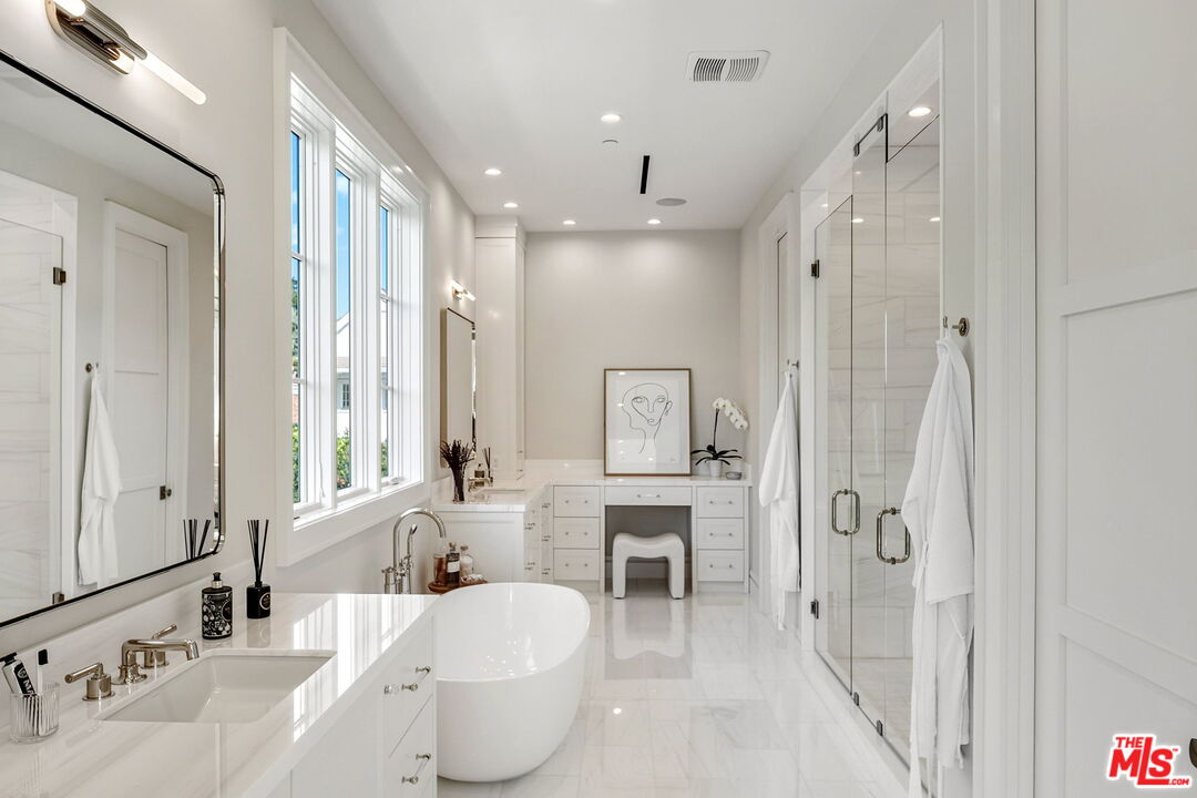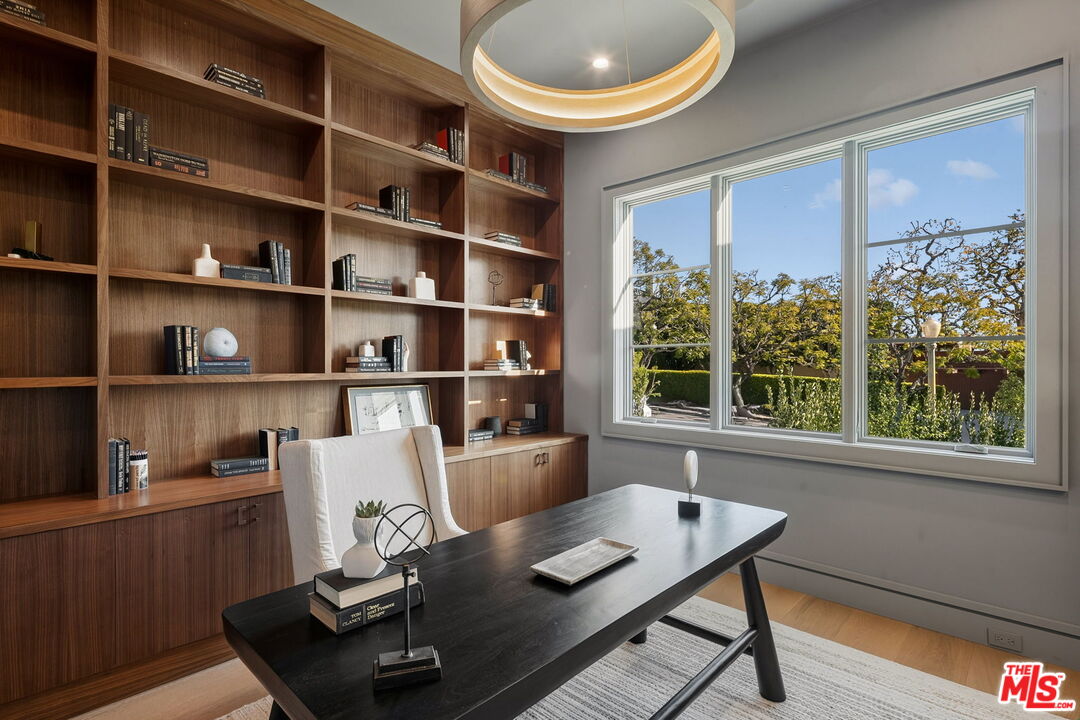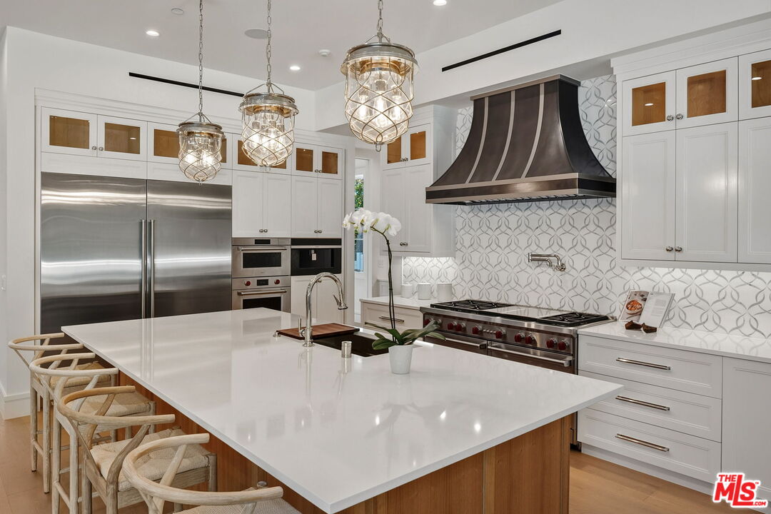 Brand new Hamptons-style Traditional home located in the prestigious Upper Riviera, one of the Westside's most coveted addresses. Spanning approximately 7,850+/- sq. ft. , this residence offers 6 bedrooms inclusive of a main floor guest suite with sitting room and kitchenette. The home is designed with the finest finishes, combining timeless elegance with modern conveniences. The entry leads to a floating staircase, and opens to a grand living room and formal dining room area. There is also an office/study with floor-to-ceiling walnut cabinetry. The gourmet kitchen features a full Subzero/Wolf suite of appliances, oversized island, butler's pantry, and a large walk-in pantry. The kitchen opens to a breakfast area and spacious family room with oak built-in cabinetry, and expansive La Cantina glass doors leading to the backyard. The home is finished with white oak floors throughout, a multiple-zone HVAC system, and full smart wiring adaptable to any owner's needs. There is a Lutron lighting system, security system with multiple cameras, and Waterworks fixtures throughout. The upper level has a primary bedroom with fireplace, balcony, and spa-like marble bathroom featuring dual vanities, makeup area, oversized dual shower with multiple sprayers, two separate water closets both with Toto Washlet toilets, and a spacious walk-in closet. Three additional en-suite bedrooms with walk-in closets complete this level. The lower level is designed for entertaining with a state-of-the-art theater, large great room with bar, wine room, gym, guest/maid's suite, and abundant storage. An elevator services all three floors. Mature landscaping ensures privacy while the salt-water pool, spa, and outdoor BBQ create a relaxing retreat. Additional amenities include a full three-car garage with two EV chargers. A rare offering in the Riviera, this special home blends traditional craftsmanship with contemporary luxury in one of Los Angeles' most exclusive and quiet neighborhoods, providing a distinctive haven of tranquility.