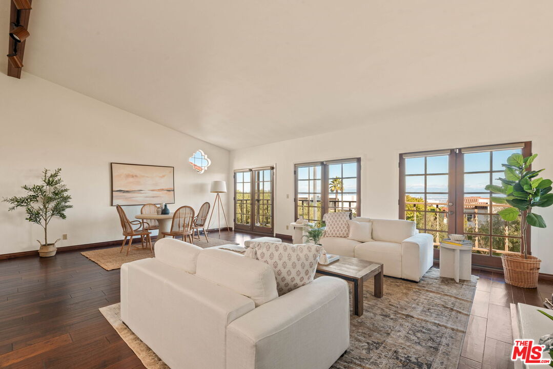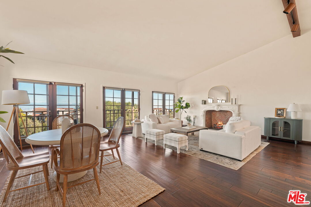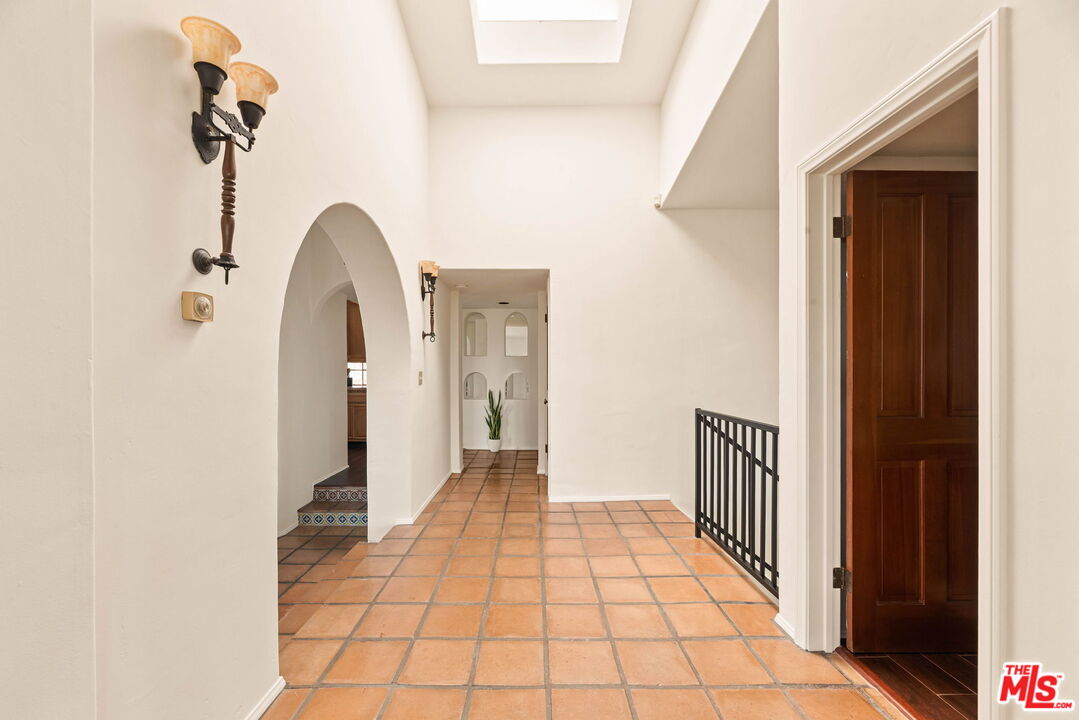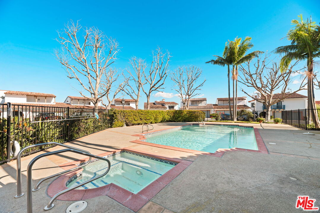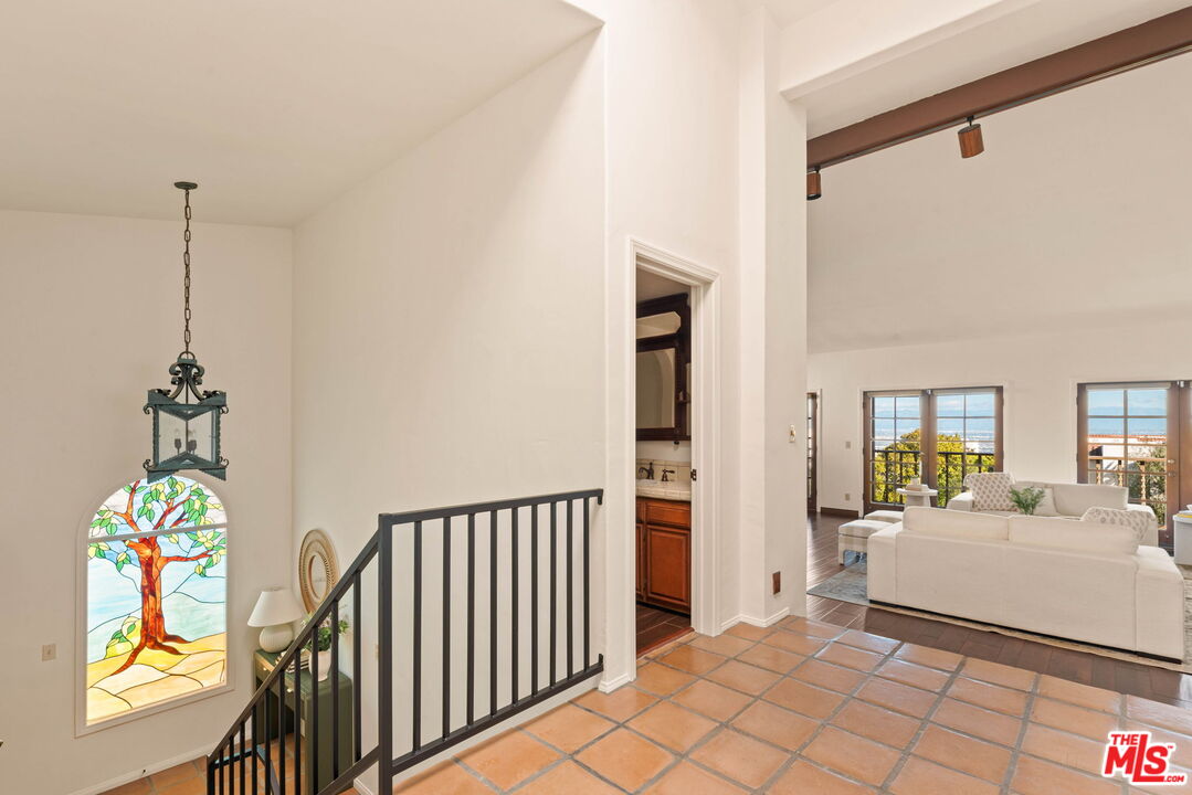 Coastal Elegance Meets Spanish Heritage in Rancho Palos Verdes. Offering an unrivaled vantage point overlooking the shimmering Queen's Necklace coastline, Downtown skyline, the Hollywood sign, and mountain tops over to the Port of Long Beach. This rare standalone townhome serves as a beautiful expression of Spanish Colonial Revival design, nestled within a private, gated enclave of just ten residences for the ultimate sanctuary in secure boutique living. Upon entering through a fragrant, flowered stucco courtyard, you are greeted by an interior of architectural integrity defined by soaring vaulted ceilings, exposed timber beams, and classic arched walkways that lead seamlessly to a formal dining room. Authentic terracotta flooring and one-of-a-kind hand-painted tiles run throughout the residence, creating a grounded Mediterranean ambiance that extends into the gourmet kitchen, which features a six-burner Viking cooktop, double GE Profile convection ovens, and a charming dining nook that opens to one of three spacious upper-level patios. The lower-level primary suite serves as a true retreat, opening via a series of French doors to a private gated backyard and featuring an innovative dual-wing bathroom with a shared Spanish-tiled tub and shower. Two additional bedrooms on the opposite wing, one of which is perfectly suited as an executive den or office, ensure complete privacy for guests. Offering the solitude of a single-family home with the effortless luxury of gated community amenities like a gorgeous pool and clubhouse, this unique Rancho Palos Verdes offering provides a peaceful, secure setting just moments from the area's premier shopping and dining.