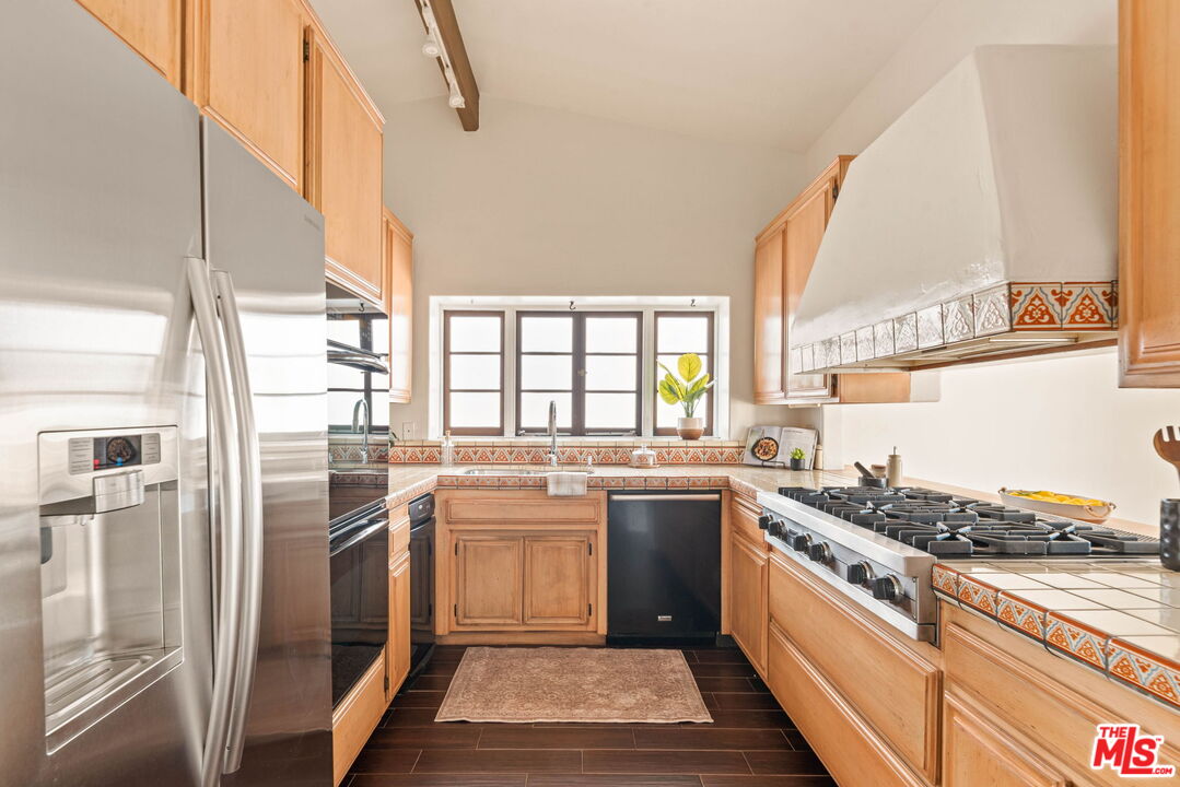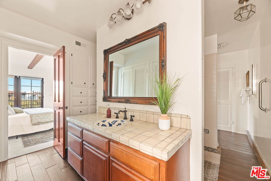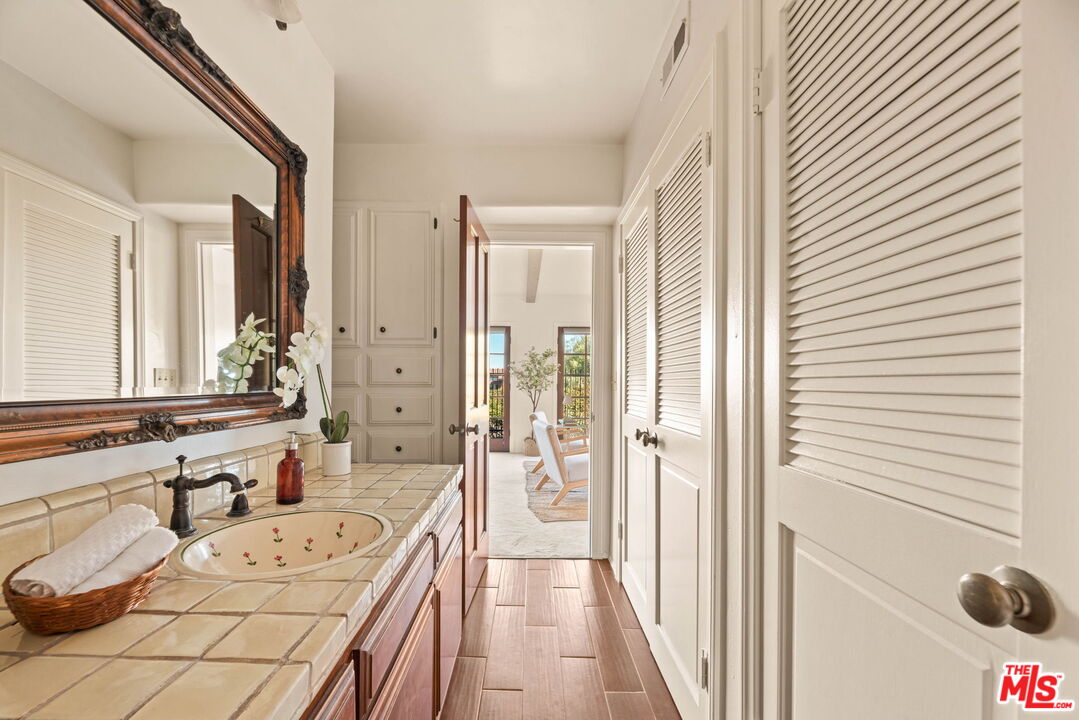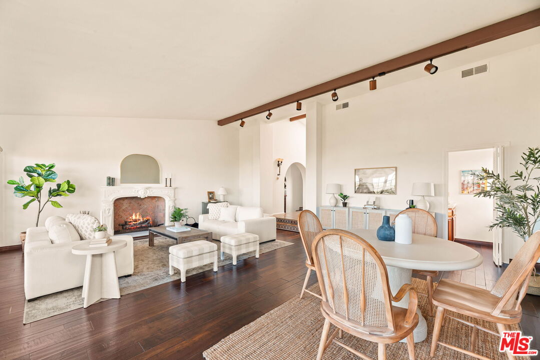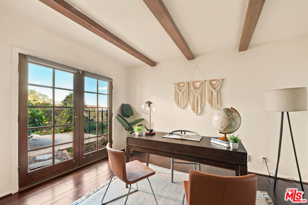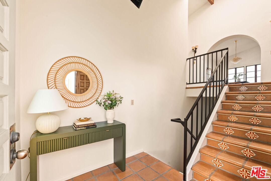 Coastal Elegance Meets Spanish Heritage in Rancho Palos Verdes. Offering an unrivaled vantage point overlooking the shimmering Queen's Necklace coastline, Downtown skyline, the Hollywood sign, and mountain tops over to the Port of Long Beach. This rare standalone townhome serves as a beautiful expression of Spanish Colonial Revival design, nestled within a private, gated enclave of just ten residences for the ultimate sanctuary in secure boutique living. Upon entering through a fragrant, flowered stucco courtyard, you are greeted by an interior of architectural integrity defined by soaring vaulted ceilings, exposed timber beams, and classic arched walkways that lead seamlessly to a formal dining room. Authentic terracotta flooring and one-of-a-kind hand-painted tiles run throughout the residence, creating a grounded Mediterranean ambiance that extends into the gourmet kitchen, which features a six-burner Viking cooktop, double GE Profile convection ovens, and a charming dining nook that opens to one of three spacious upper-level patios. The lower-level primary suite serves as a true retreat, opening via a series of French doors to a private gated backyard and featuring an innovative dual-wing bathroom with a shared Spanish-tiled tub and shower. Two additional bedrooms on the opposite wing, one of which is perfectly suited as an executive den or office, ensure complete privacy for guests. Offering the solitude of a single-family home with the effortless luxury of gated community amenities like a gorgeous pool and clubhouse, this unique Rancho Palos Verdes offering provides a peaceful, secure setting just moments from the area's premier shopping and dining.