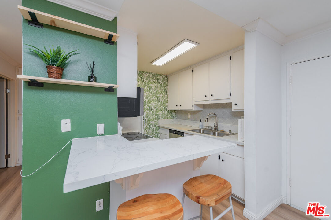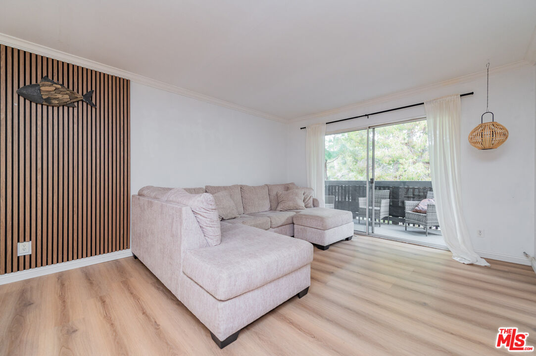 Beautiful top-floor condo featuring a serene balcony with lush, tree-filled views. This light-soaked residence is located within a resort-style community and offers access to highly regarded schools. Just steps away, enjoy a sun-drenched sparkling pool and a spacious community room perfect for gatherings. Continue along the scenic paths to two community tennis courts, all thoughtfully integrated into the tranquil grounds. The unit has been recently renovated, showcasing new hard-surface flooring throughout, a fully remodeled bathroom with modern fixtures, a kitchen with updates including sleek countertops and contemporary finishes, and a large walk-in closet providing abundant storage. Tasteful designer touches and quality materials elevate the home's modern look and feel, creating an inviting space that combines comfort and style. Step onto the private balcony to unwind and take in the peaceful setting surrounded by mature, majestic trees. Additional highlights include one dedicated parking space plus ample guest parking within the community. Ideally situated adjacent to the South Coast Botanic Garden, this community offers an exceptional setting for those who value nature, comfort, and convenience -- a perfect blend of resort living and neighborhood charm.