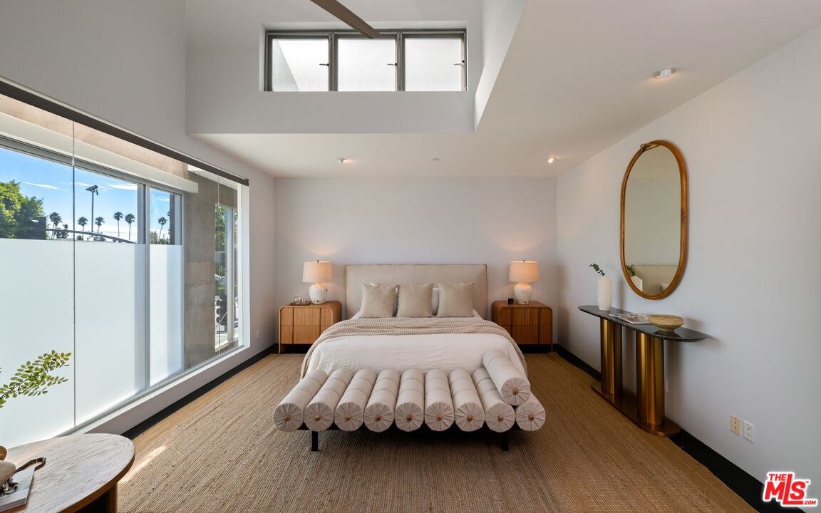 Situated in the heart of Santa Monica, enjoy the ultimate lifestyle with LA's finest coffee, shopping, and dining just moments from your front door. Sophisticated and timeless, this contemporary eco-friendly residence blends architectural elegance with sustainable design all in the award winning Franklin School District. Originally built in 2009 and exceptionally well maintained, this light-filled home features soaring ceilings, skylights, glass walls, and an exposed steel floating staircase, creating an effortless sense of openness and style.The chef's kitchen is equipped with Energy Star stainless steel appliances, a large center island with breakfast bar, and seamless flow into the family room and private courtyard perfect for indoor-outdoor living. The main level also offers a dining room, living room, and an ensuite bedroom ideal for guests or an office. Upstairs, the primary suite serves as a private retreat with dual glass walls, a spa-inspired bath with steam shower and soaking tub, and access to a loft space. Two additional bedroom en-suites complete the second floor, while the top level features two lofts and a rooftop deck showcasing ocean and mountain views. The ground level includes a guest suite with separate entrance, an oversized gym, and a garage made for a car collector's dream with parking for up to 5 cars! Built with sustainable integrity, the home includes hydronic radiant heat floors, low-E double-pane windows, AEP Span metal roofing, natural ventilation systems, and energy-efficient insulation. Offering exceptional design, eco-conscious construction, and an unbeatable central Santa Monica location, this home perfectly balances luxury, functionality, and enduring quality.