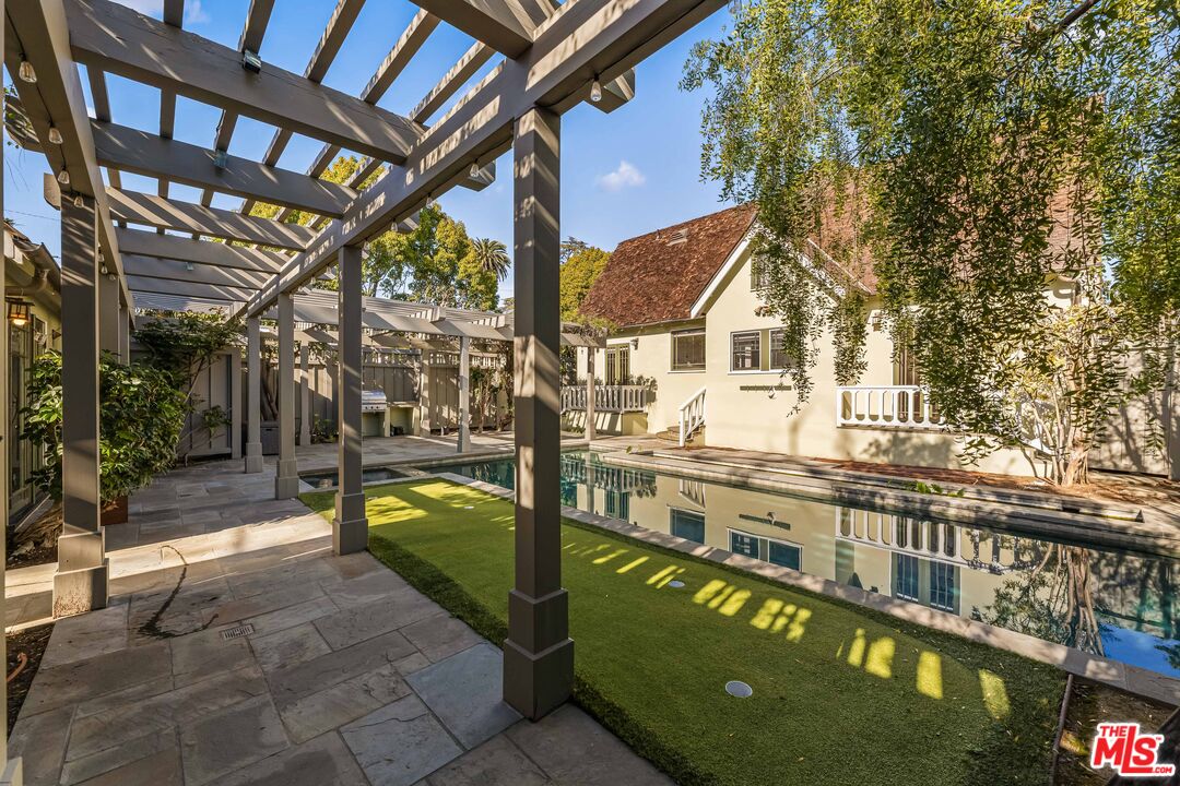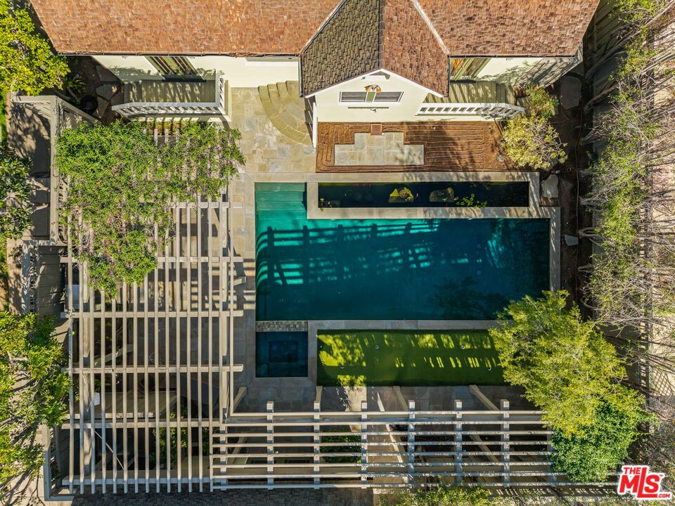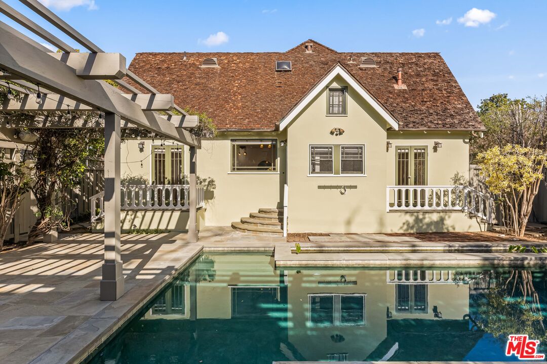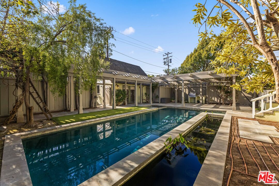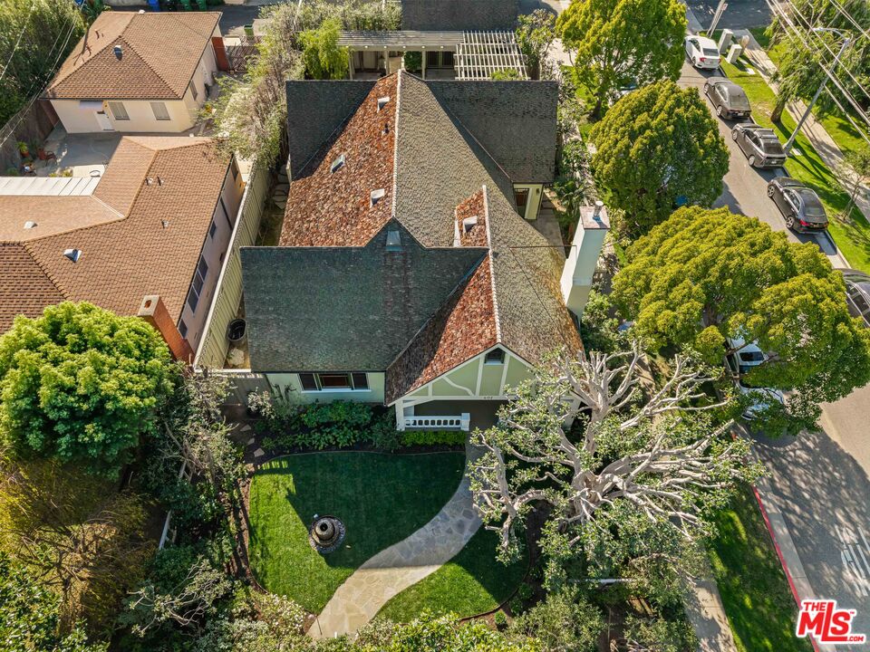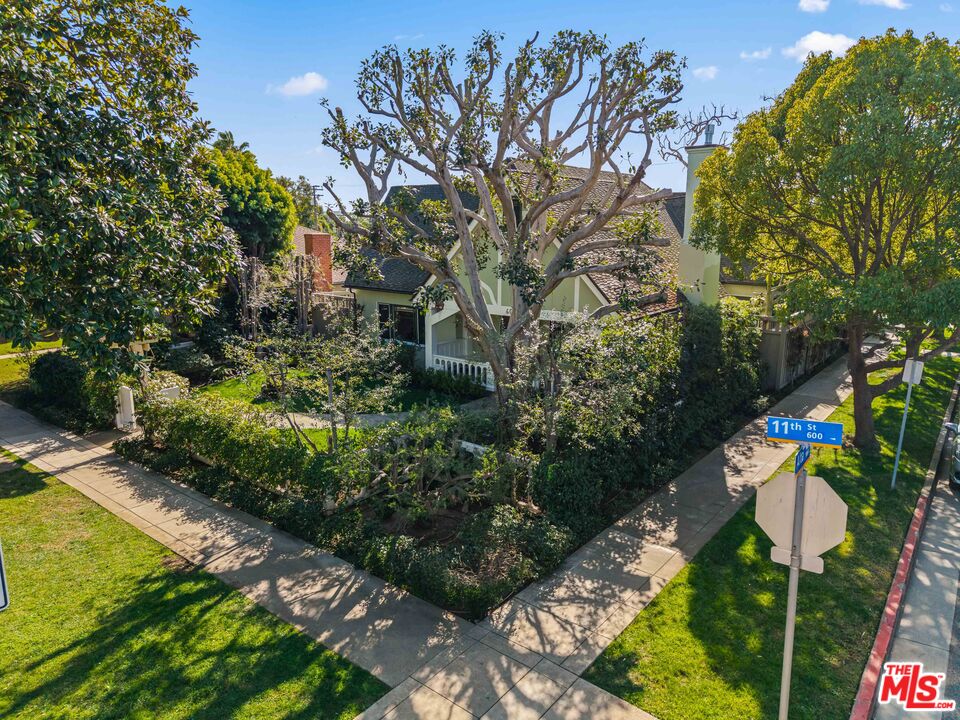 Nestled on a corner lot in the heart of Santa Monica's North of Montana neighborhood, this gated and secluded Craftsman gem offers unparalleled privacy, mere blocks from the ocean. Restored from its 1924 origins, the residence seamlessly merges contemporary opulence and amenities with authentic Craftsman architecture, warmth, and timeless appeal. Step inside via the enchanting vine-wrapped entry and charming front yard. The main level boasts an expansive living space, a fireplace, elegant dining area, cozy family room, dedicated office/library, a guest bedroom with full bath, powder, and a fabulous kitchen featuring a central island, marble countertops, and a breakfast corner. The master suite encompasses the full upper floor, including a fireplace, generous walk-in closets, lounge space, a versatile office/gym area with sauna, and a fabulous master bathroom. The main house includes 4 Bedrooms 2 Bath + Detached 1 Bedroom 2 Bath guesthouse at rear. The separate two-level guest quarters feature a media/screening room and bathroom on the ground floor, with a bedroom and bath above. The serene rear yard invites relaxation with a covered veranda patio, tranquil koi pond, inviting pool and spa, putting green, island for bbq, and an additional side patio ideal for al fresco mornings.