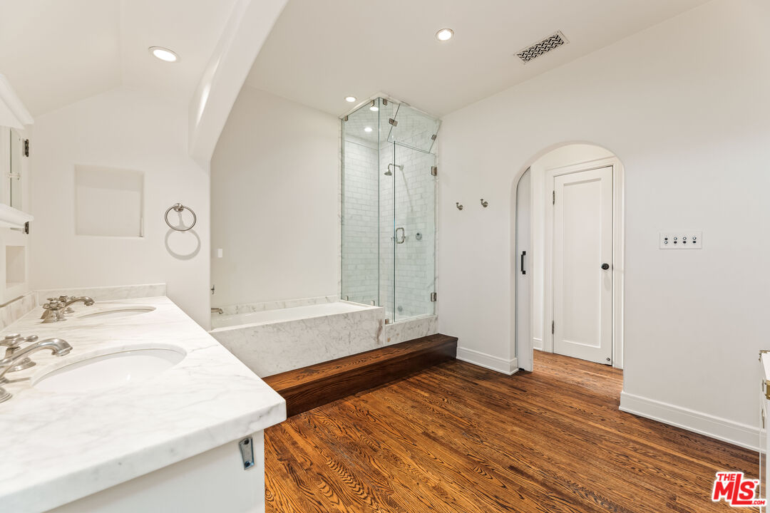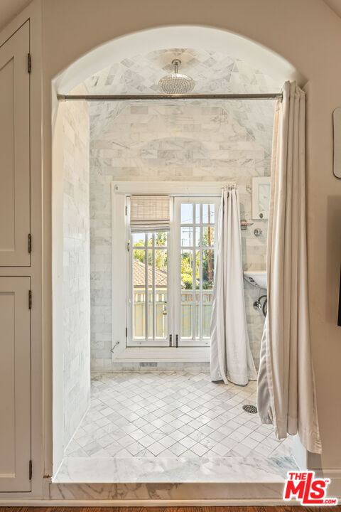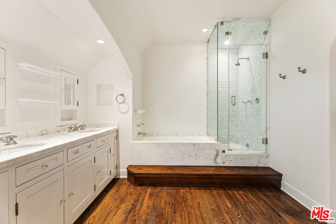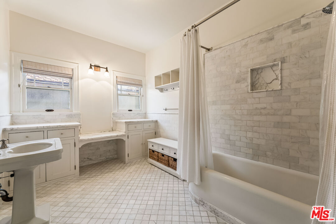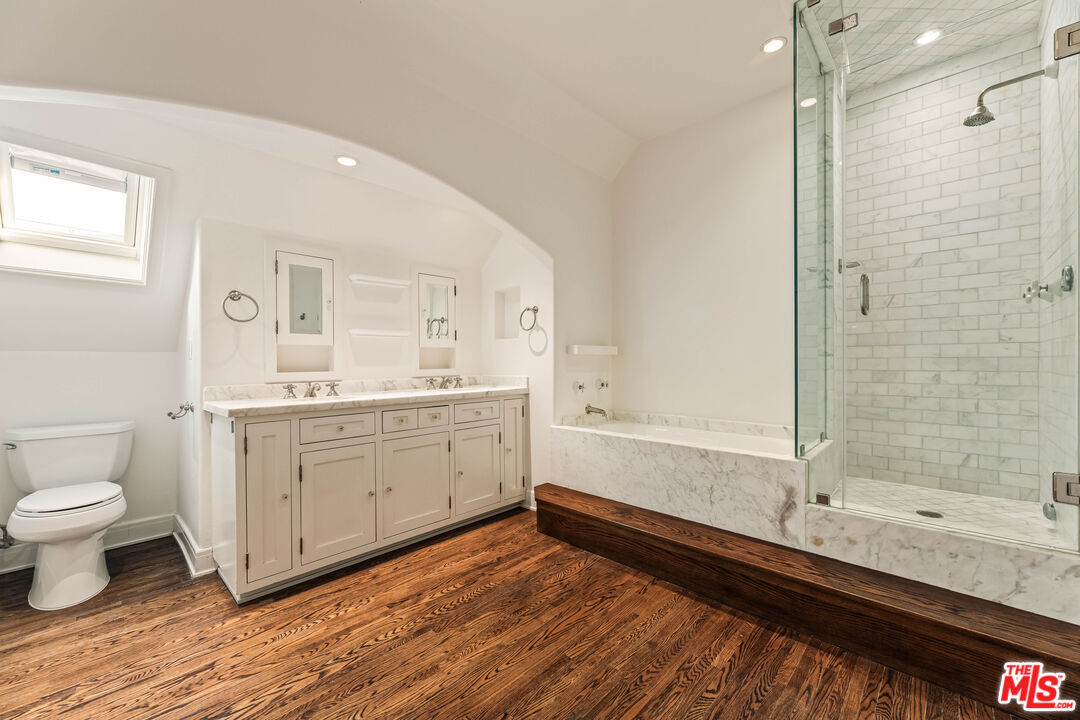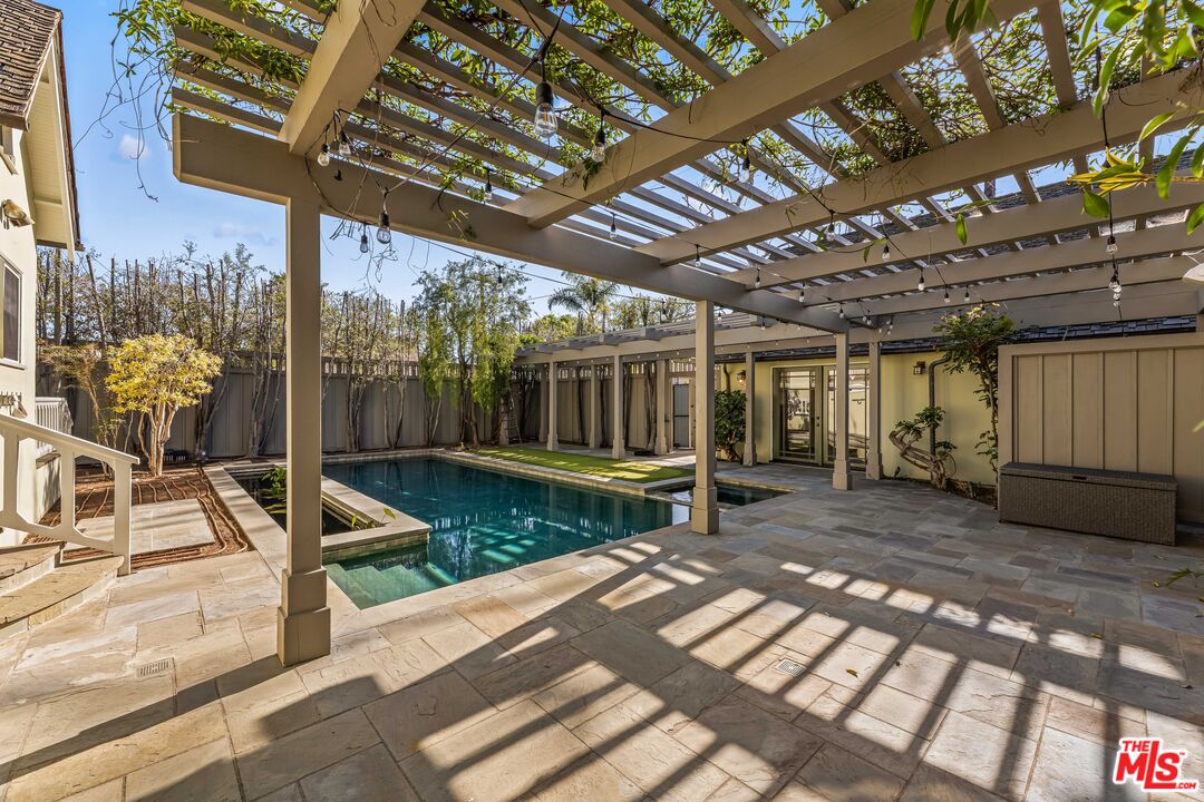 Nestled on a corner lot in the heart of Santa Monica's North of Montana neighborhood, this gated and secluded Craftsman gem offers unparalleled privacy, mere blocks from the ocean. Restored from its 1924 origins, the residence seamlessly merges contemporary opulence and amenities with authentic Craftsman architecture, warmth, and timeless appeal. Step inside via the enchanting vine-wrapped entry and charming front yard. The main level boasts an expansive living space, a fireplace, elegant dining area, cozy family room, dedicated office/library, a guest bedroom with full bath, powder, and a fabulous kitchen featuring a central island, marble countertops, and a breakfast corner. The master suite encompasses the full upper floor, including a fireplace, generous walk-in closets, lounge space, a versatile office/gym area with sauna, and a fabulous master bathroom. The main house includes 4 Bedrooms 2 Bath + Detached 1 Bedroom 2 Bath guesthouse at rear. The separate two-level guest quarters feature a media/screening room and bathroom on the ground floor, with a bedroom and bath above. The serene rear yard invites relaxation with a covered veranda patio, tranquil koi pond, inviting pool and spa, putting green, island for bbq, and an additional side patio ideal for al fresco mornings.