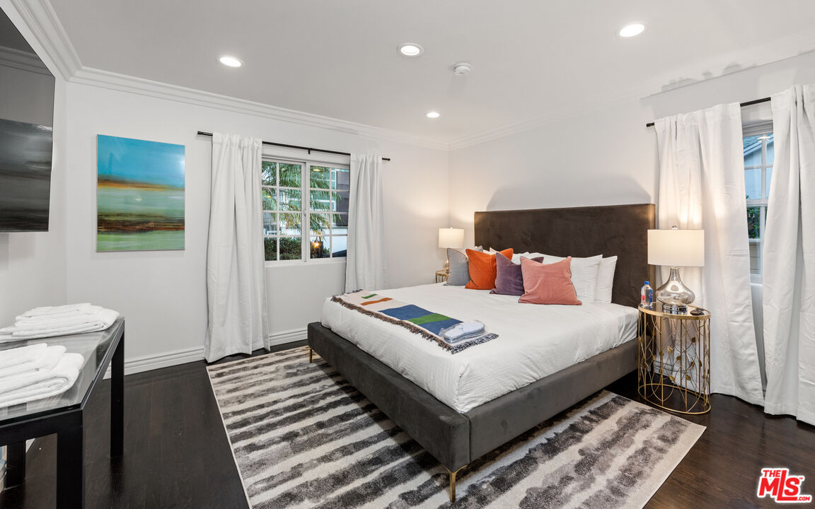Fully-furnished and turnkey! Available for short term monthly and long-term rentals! Treat yourself to the refreshing charm of this gated urban oasis situated ideally in the heart of West Hollywood. Impeccably decorated with pure white walls and dark wood floors and accents you will appreciate tasteful splashes of color throughout. The main floor living spaces feature a gourmet kitchen, formal dining, and grand living room with fireplace and bar. A comfortable covered patio leads to the private sun deck with glistening poll, spa, and seating area with fire pit. The spacious primary suite is designed for your comfort with fireplace, walk-in closet, jacuzzi bath, and glass shower. Four additional guest rooms are available for your friends and family. This wonderful Spanish contemporary home features a guest house, gym, all new smart TVs, and security and camera systems. Situated in the West Hollywood Design District, restaurants, boutiques, shops, and nightlife, the world will be at your fingertips.